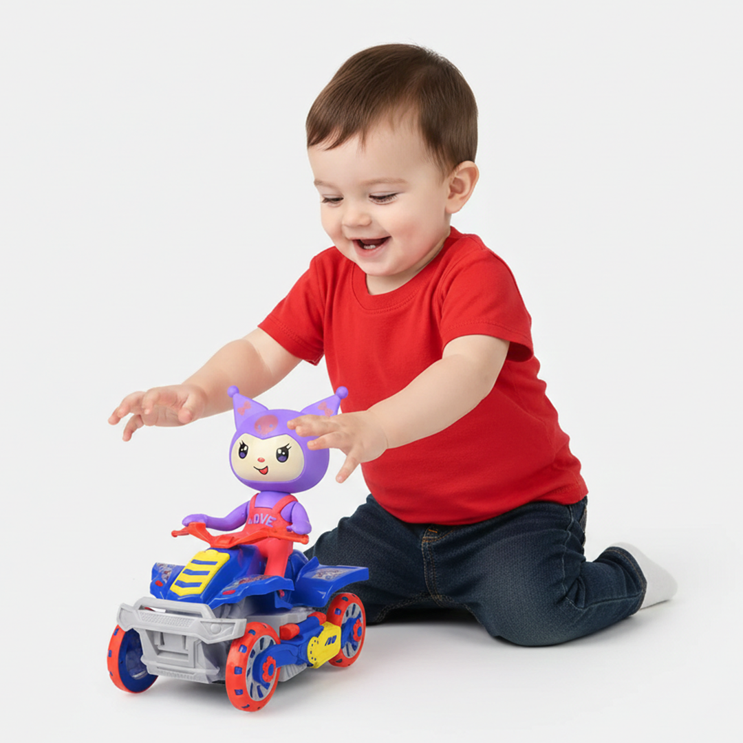 Bring home endless excitement with the Kuromi Stunt Car – the ultimate action-packed toy for kids! This battery-operated stunt car features vibrant lights, fun music, and amazing 360° rotation to keep little ones entertained for hours. Watch as it performs cool deformation tricks and spins in all directions, creating a thrilling playtime experience. Its colorful and cute Kuromi rider design makes it even more lovable for children who enjoy both stunts and adorable characters. Perfect for indoor fun, gifting, and sparking creativity in imaginative play.