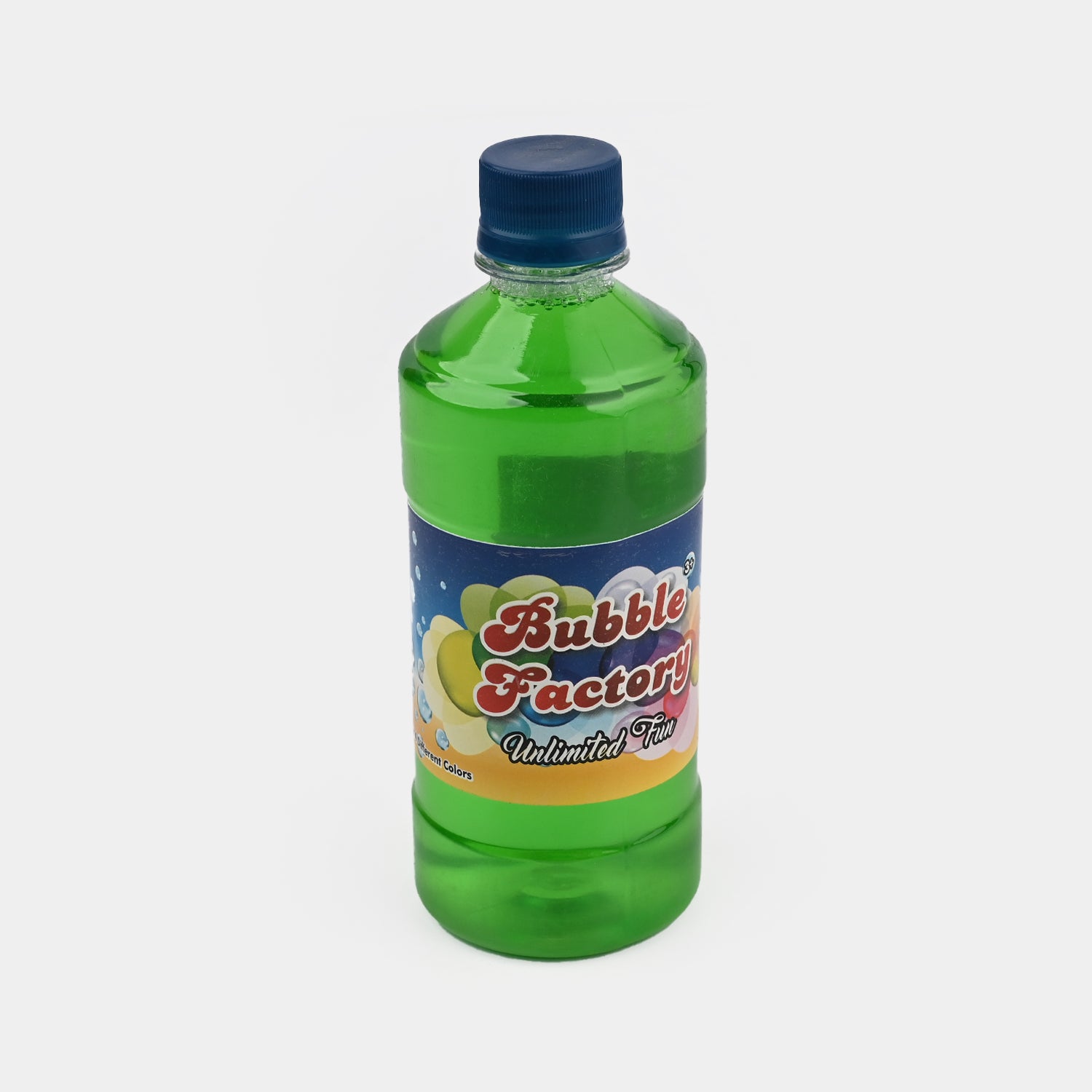 Fun, colorful label featuring “Bubble Factory Unlimited Fun”