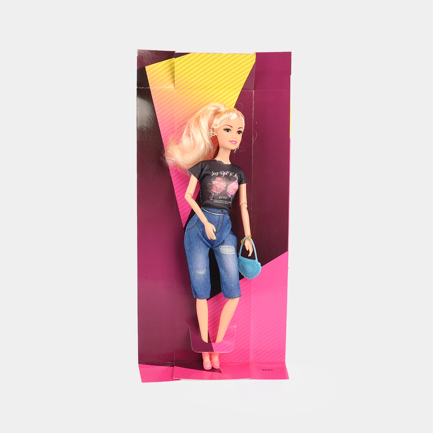 Bring style and imagination to playtime with the Fashion Girl Doll, designed for kids who love modern looks and creative storytelling. This doll features blonde hair styled in soft waves, a black graphic T-shirt, and knee-length denim shorts for a fresh, everyday fashion vibe. Lightweight and easy to handle, she’s perfect for both play and display.