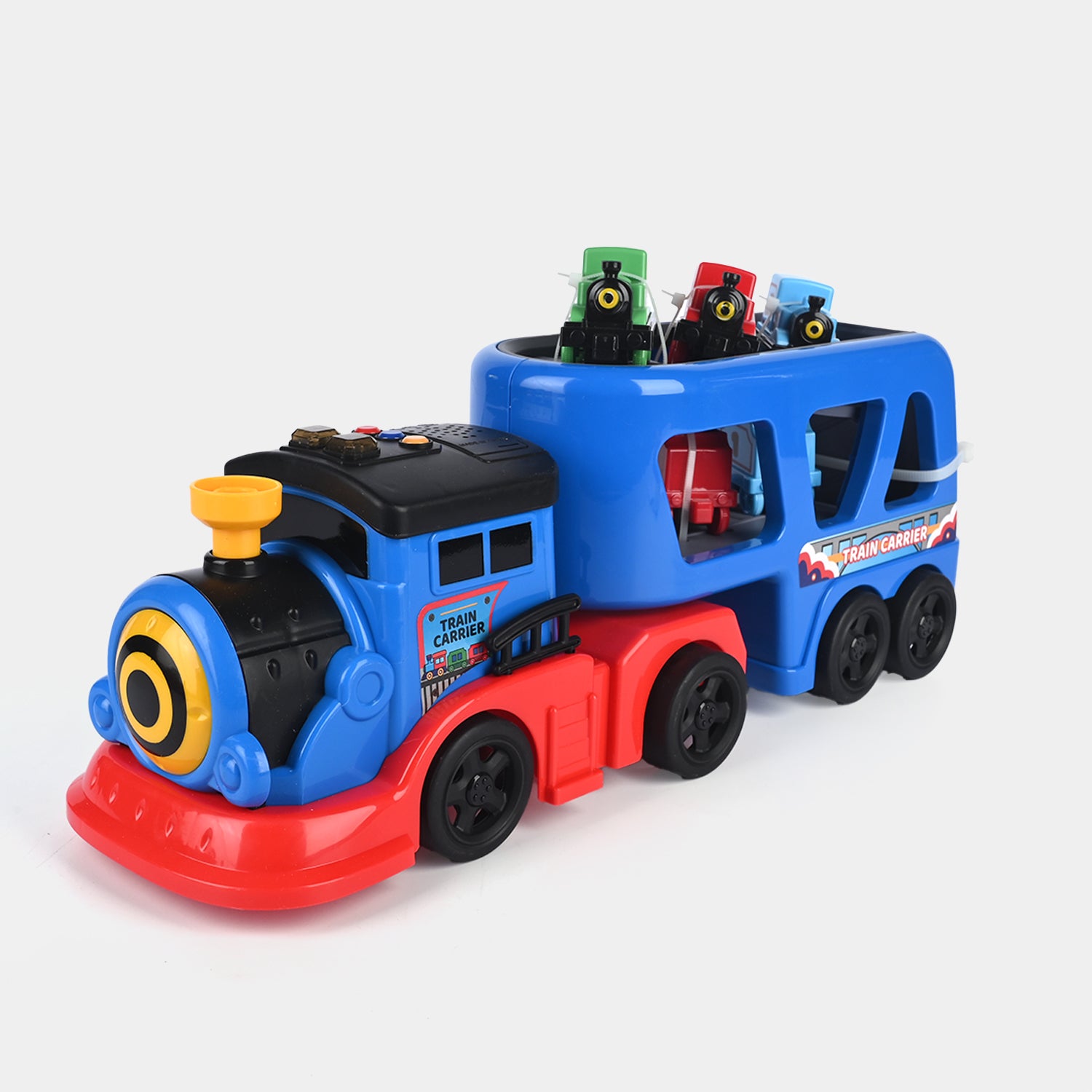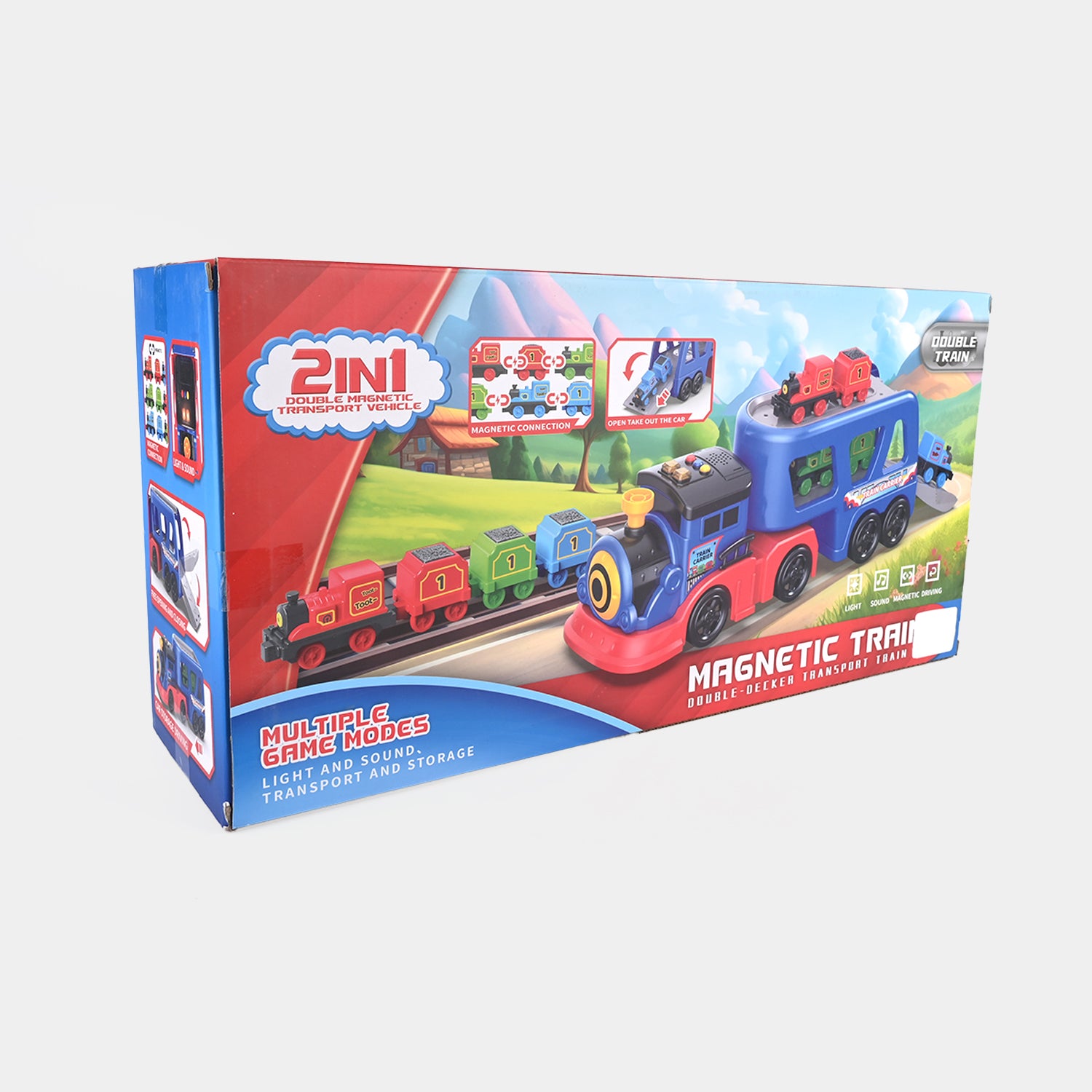 1 Large Carrier Engine, 1 Double-decker Trailer, and multiple mini magnetic train cars/wagons |