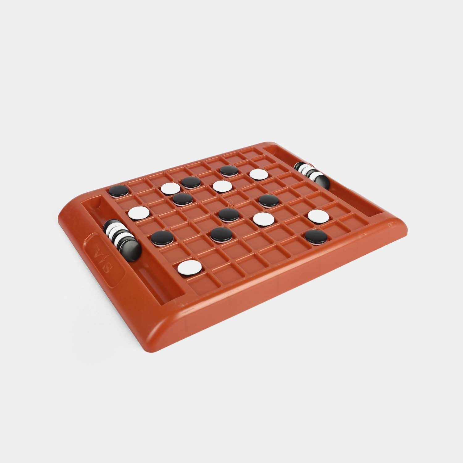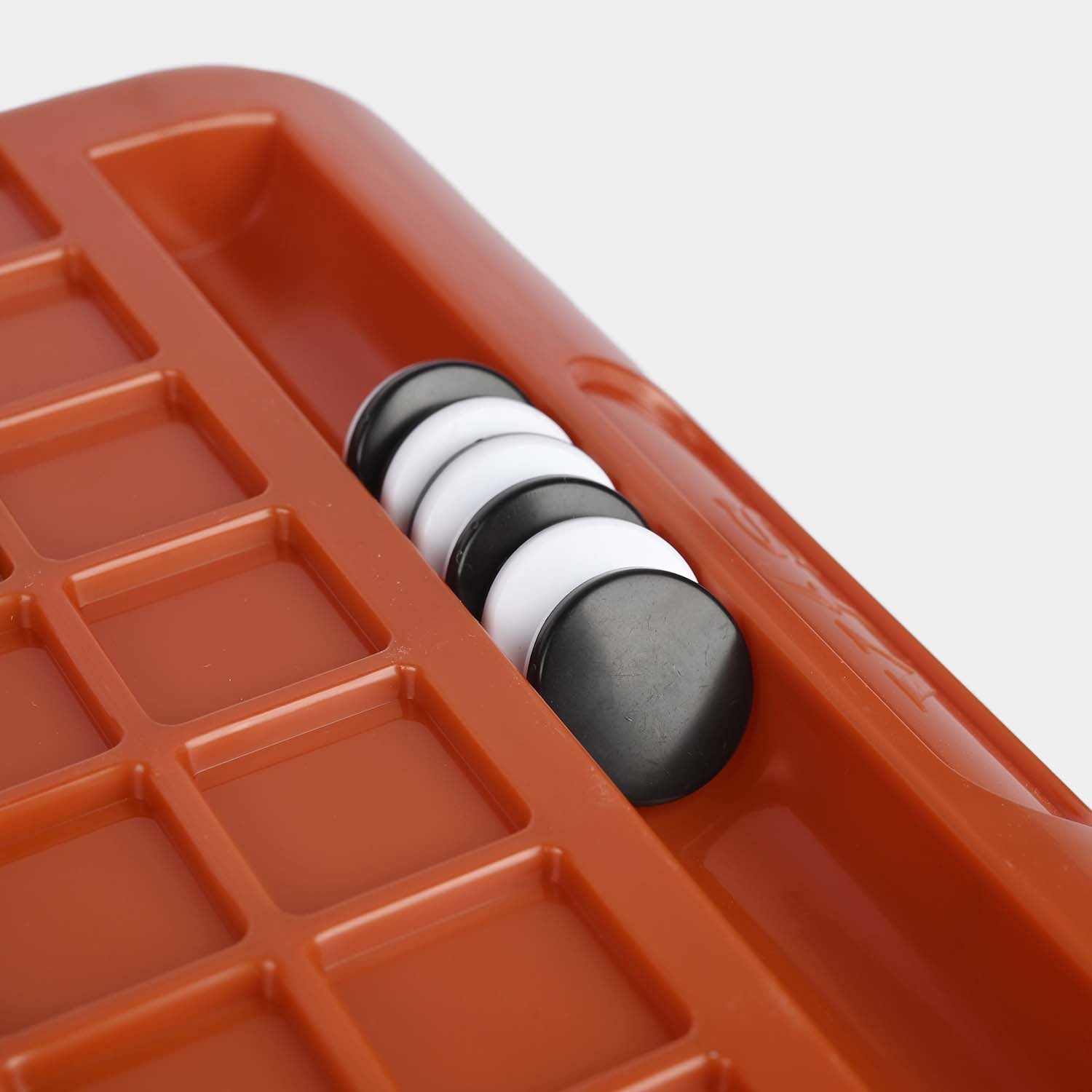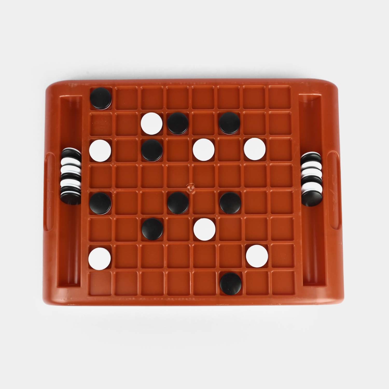 Game board with integrated storage tracks for black and white double-sided discs |