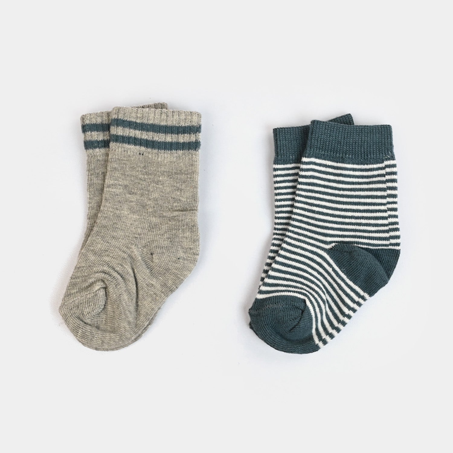 Infant boys socks, pack of 2, featuring a charming striped pattern, offering a comfortable and stylish option for everyday wear.
