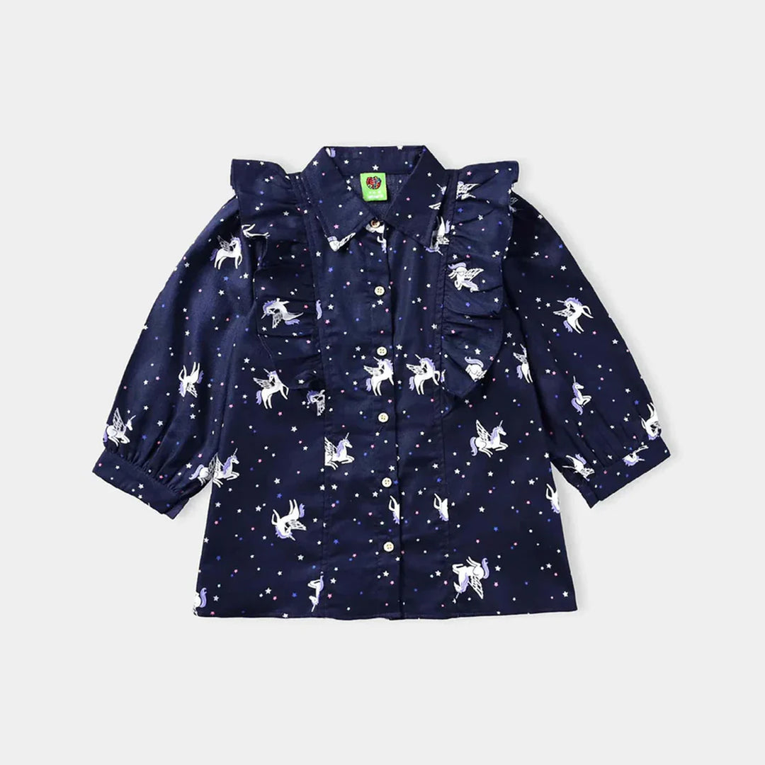 Infant Girls Poly Cotton Casual Top Teaberries-Navy Blue