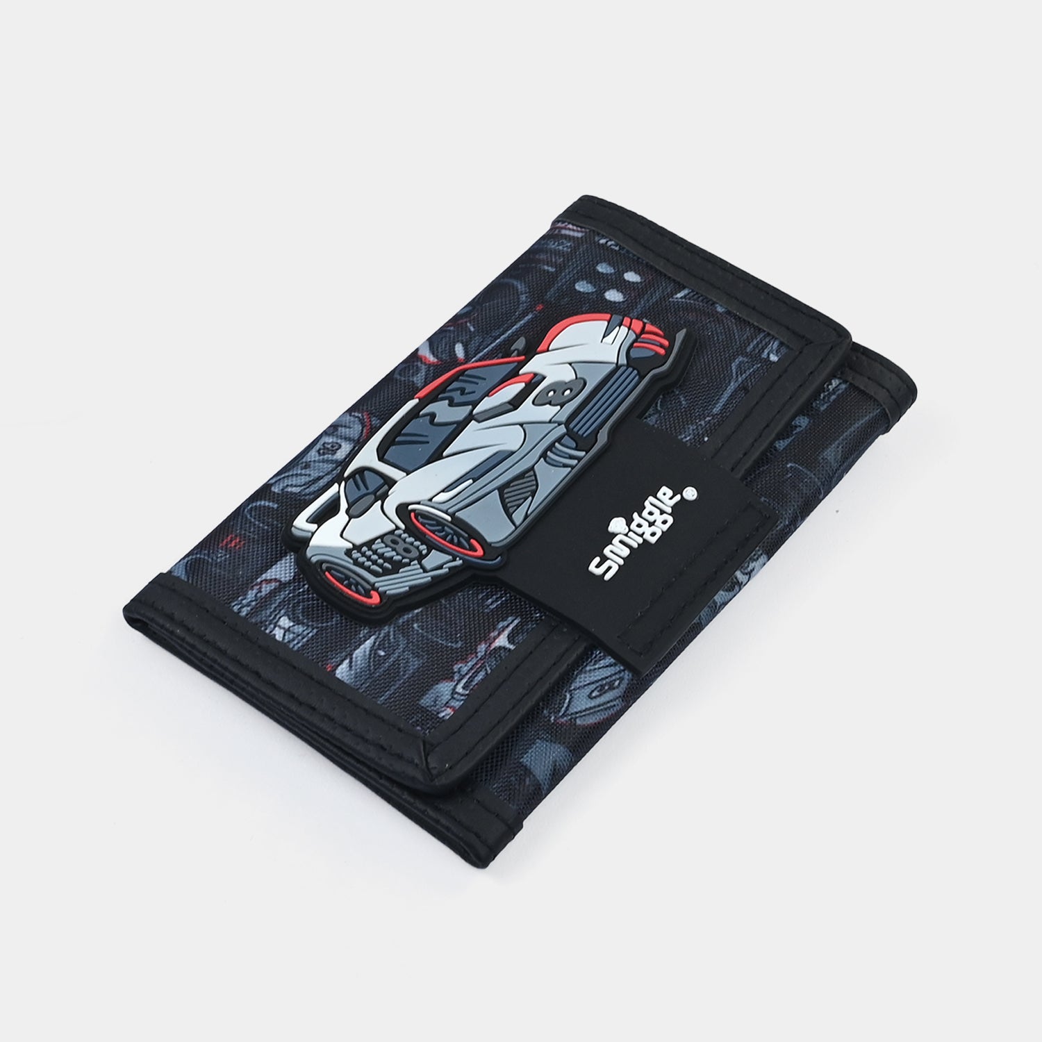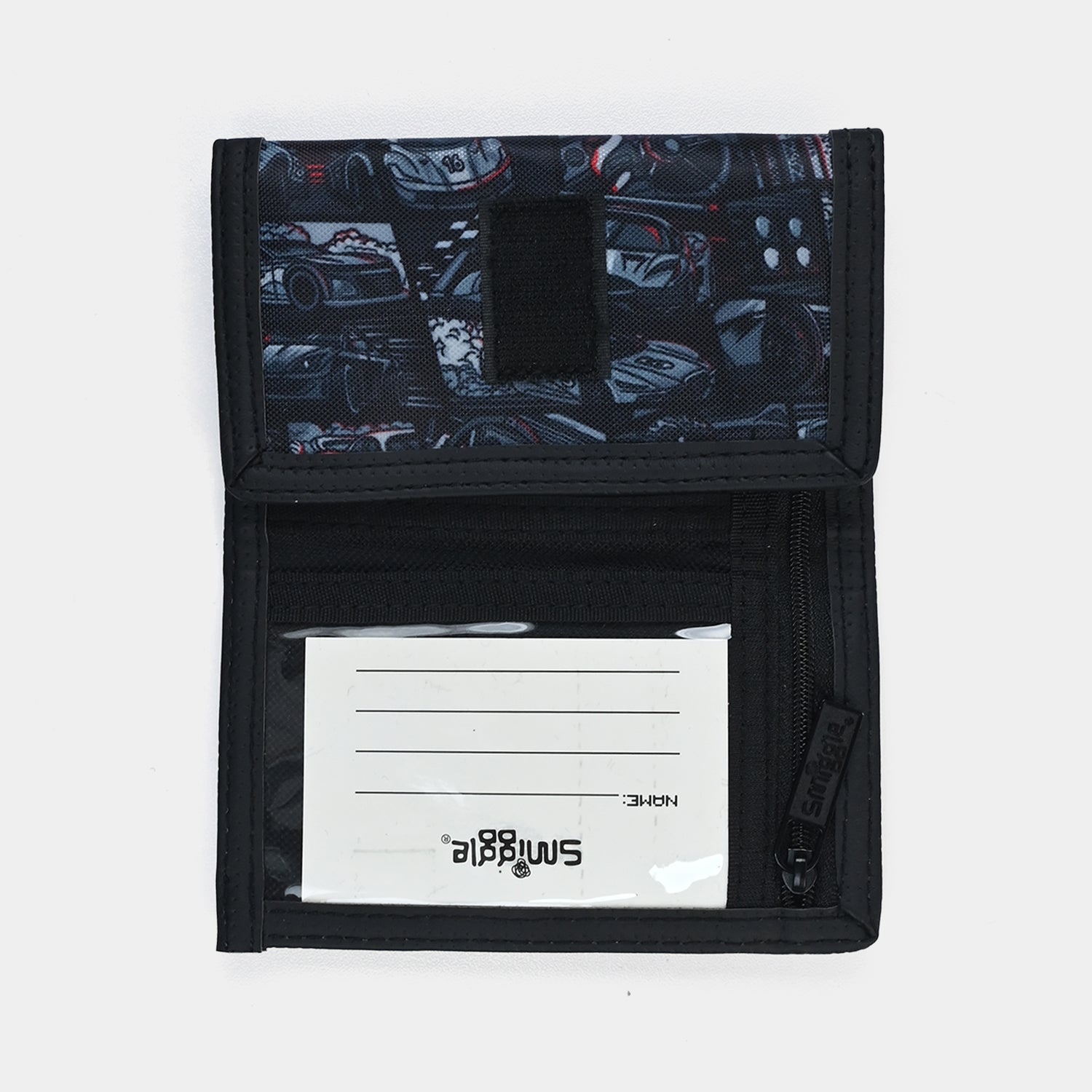 This black wallet features a fun car print. Designed to be playful yet practical, it offers organized storage and secure compartments, making it perfect for everyday use.