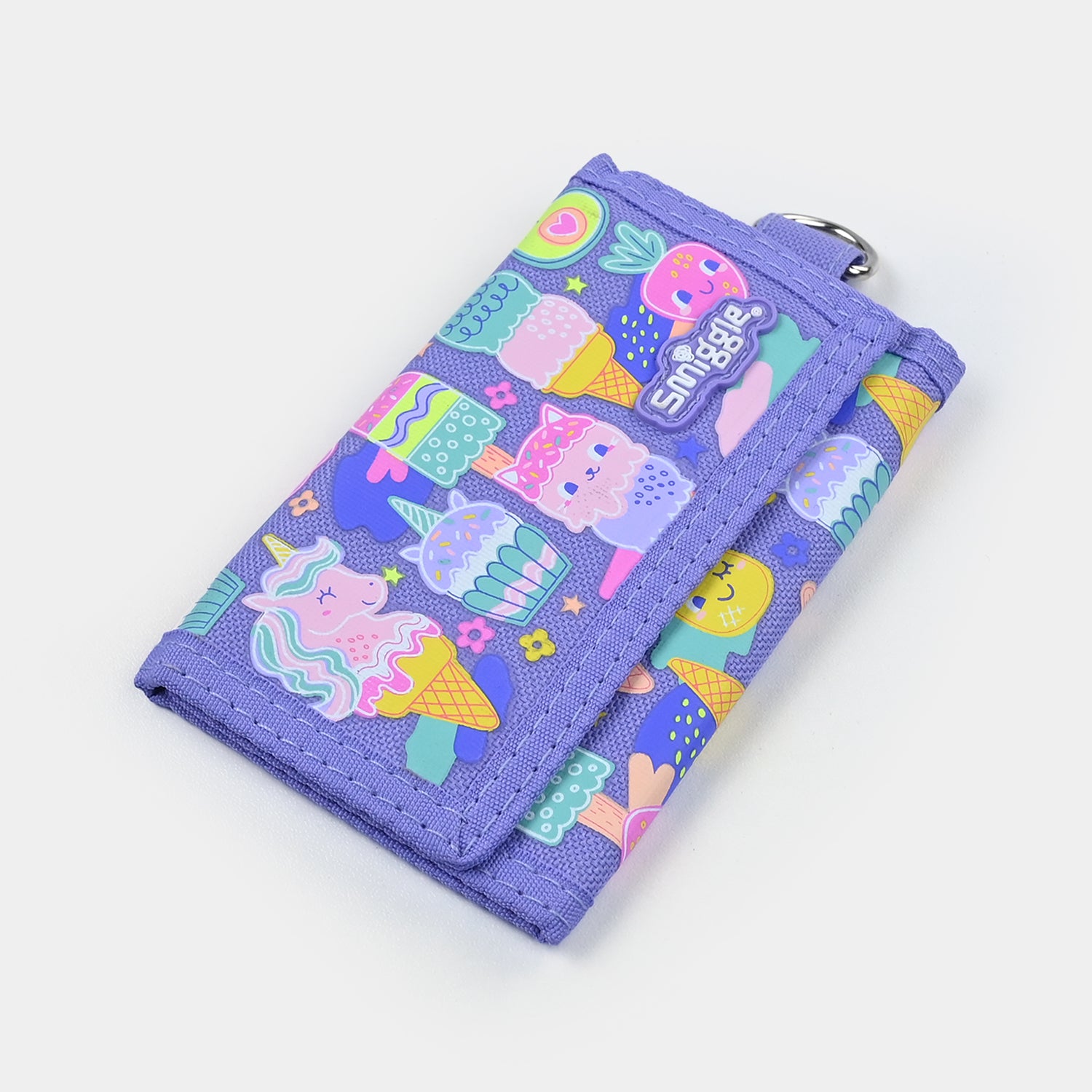 This cute purple wallet features a colorful unicorn/icecream design with fun patterns and bright details. Designed to be playful yet practical, it offers organized storage and secure compartments, making it perfect for everyday use.