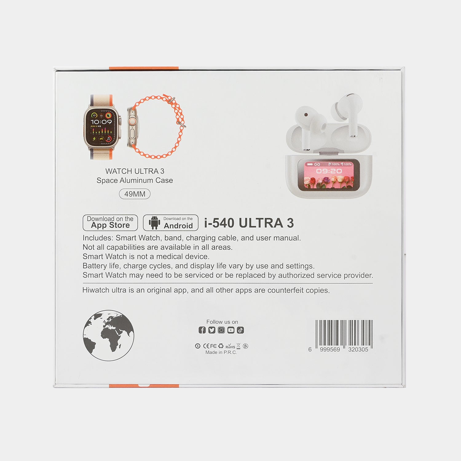 Experience smart connectivity and entertainment in one package with the i-540 Ultra 3 Smartwatch and Wireless Earphones Combo. This innovative 2-in-1 set combines a feature-rich smartwatch with high-quality wireless earbuds — perfect for fitness, music, and calls on the go.