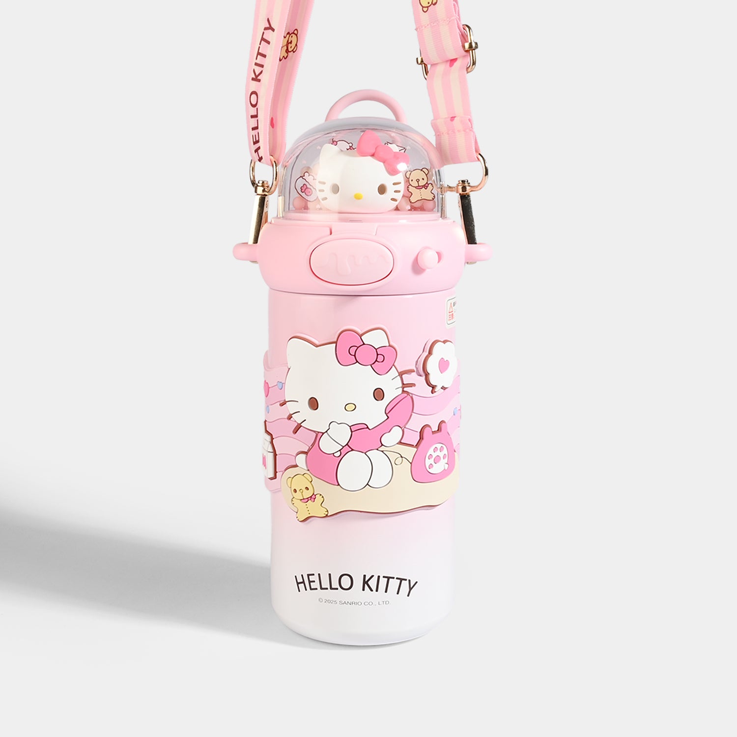 This Hello Kitty-themed steel water bottle features a long strap for easy and secure carrying. Made with premium quality and perfect finishing, it’s ideal for everyday use.