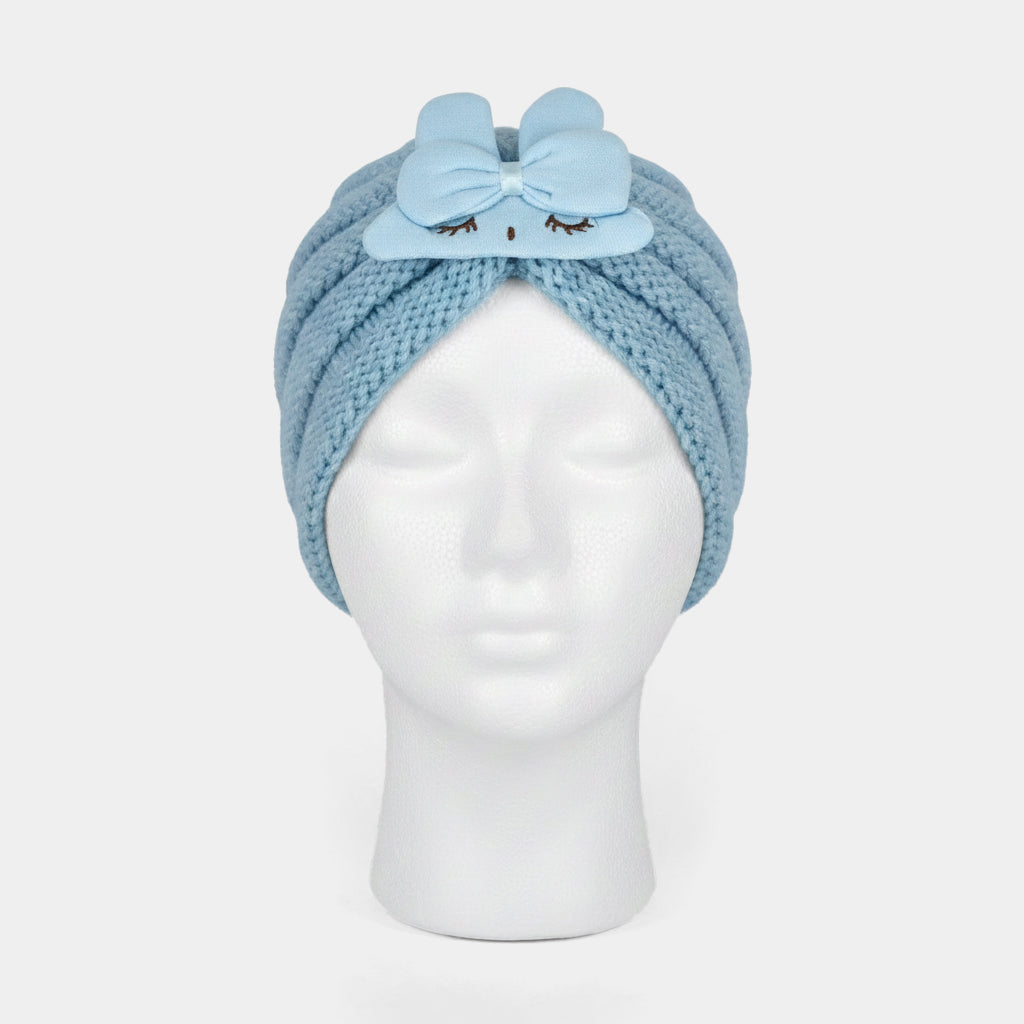 This turban-style cap not only adds a fashionable touch to the outfit but also protects the head and delicate ears, keeping the little one cozy.