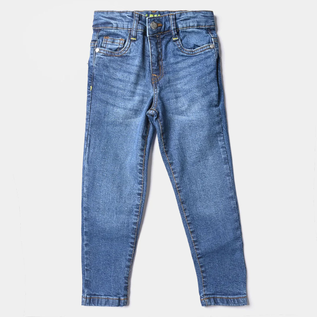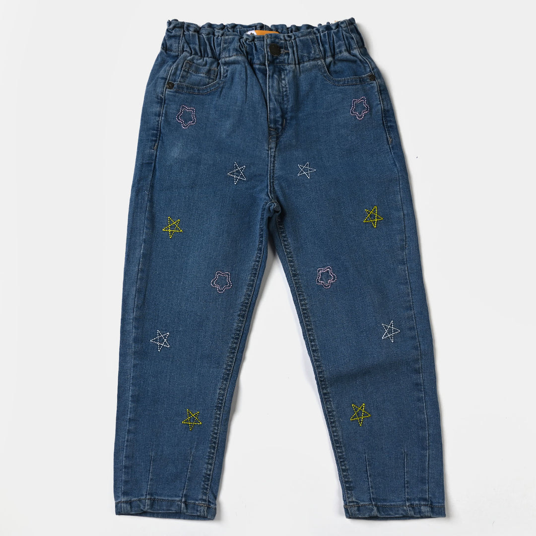 Girls Denim Stretch Pant Glitter Star-Mid Blue