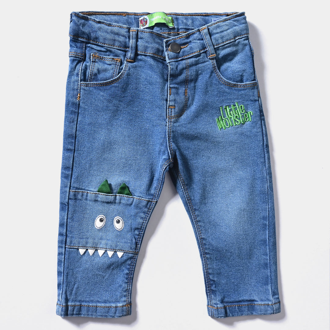 Girls Denim Stretch Pant Studs one Side-Mid Blue