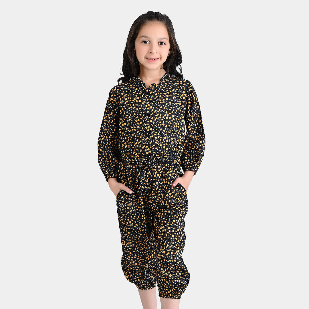Girls Cotton Poplin Jumpsuit Daffodils-Purple