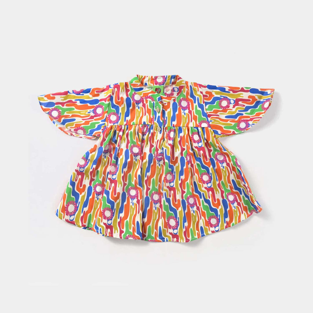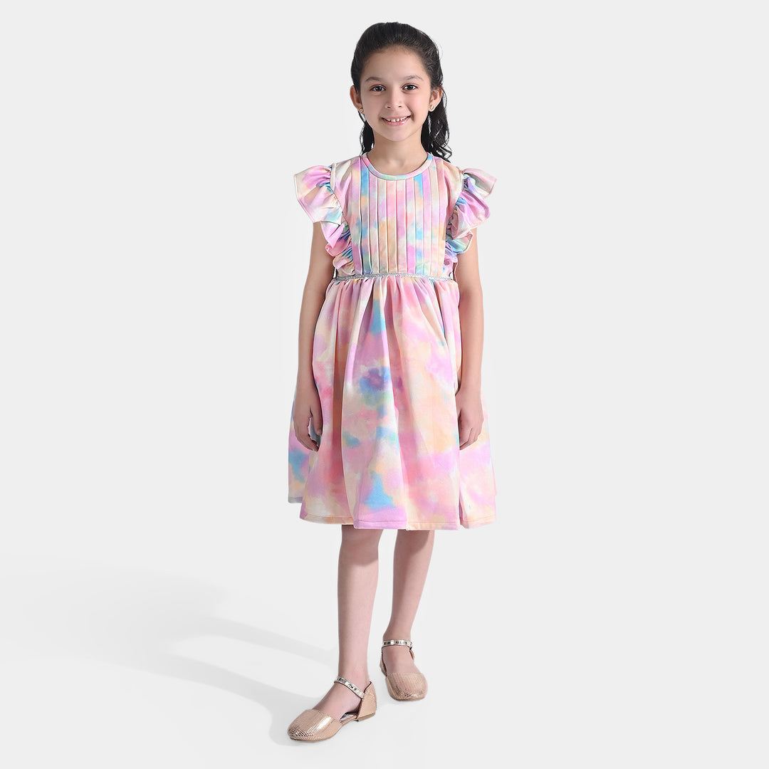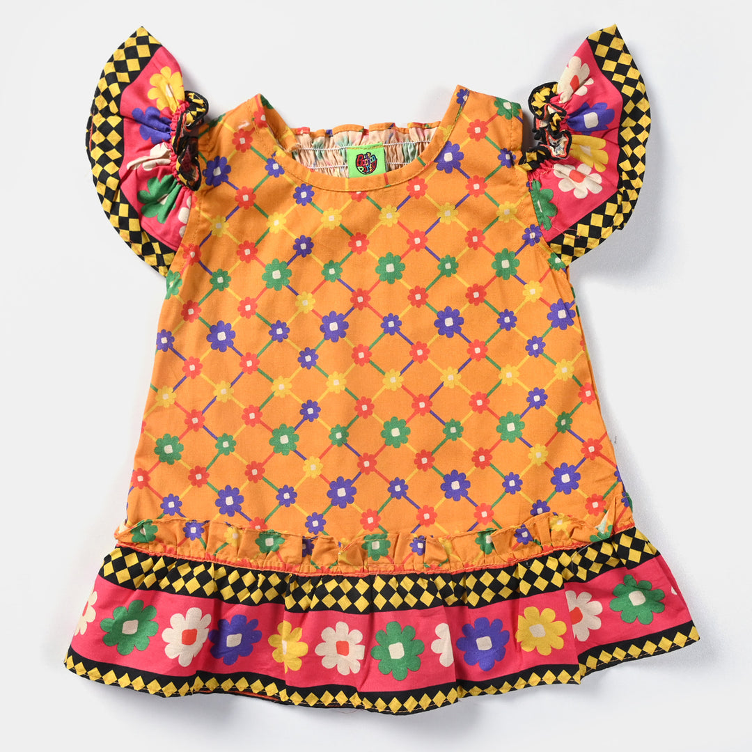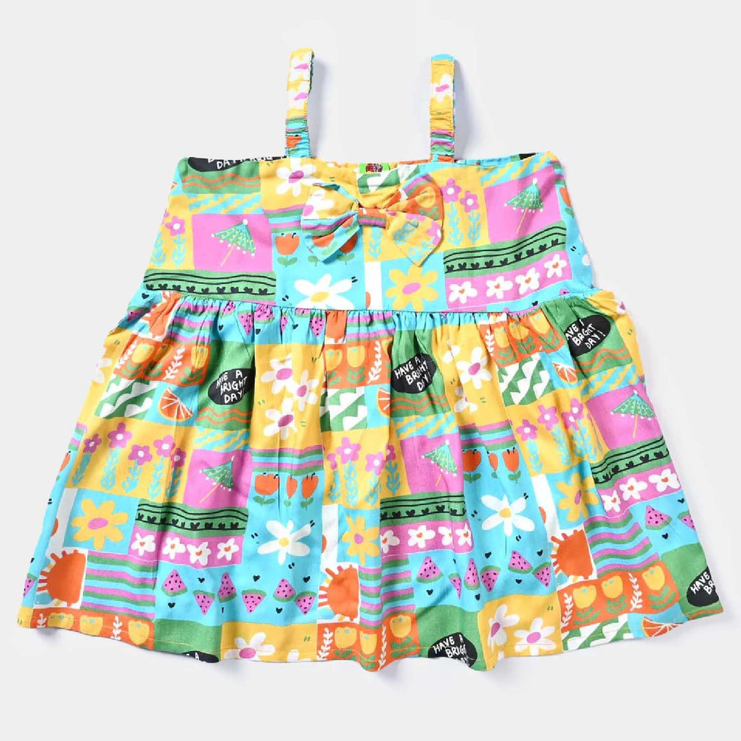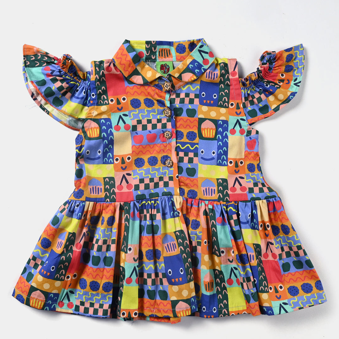 Infant Girls Cotton Jersey Knitted Frock Fruits-Printed
