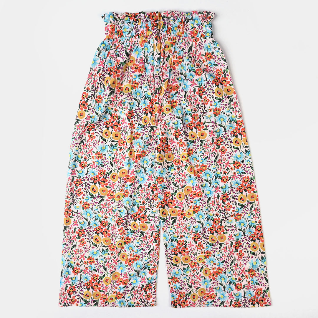 Girls Cotton Viscose Pant Colorful Floral-BLACK