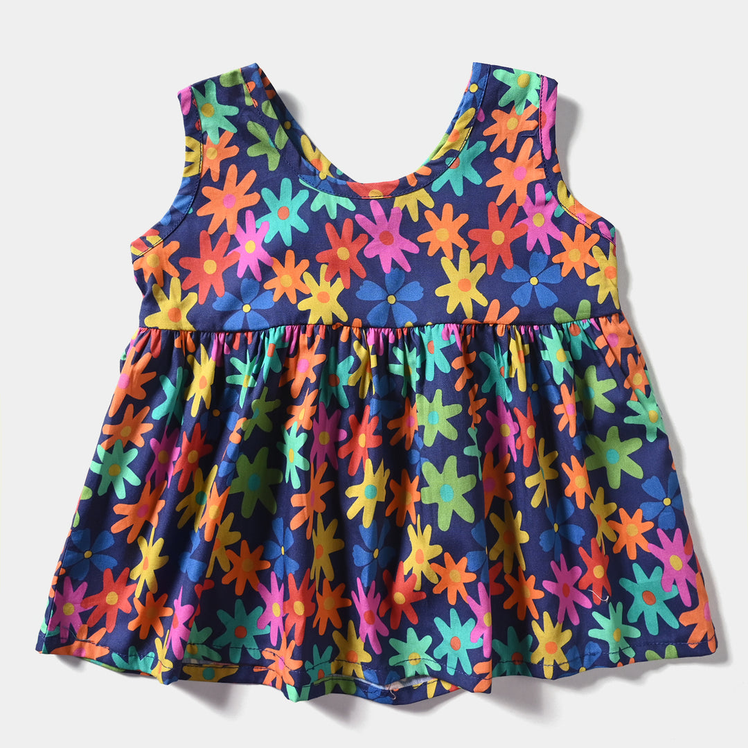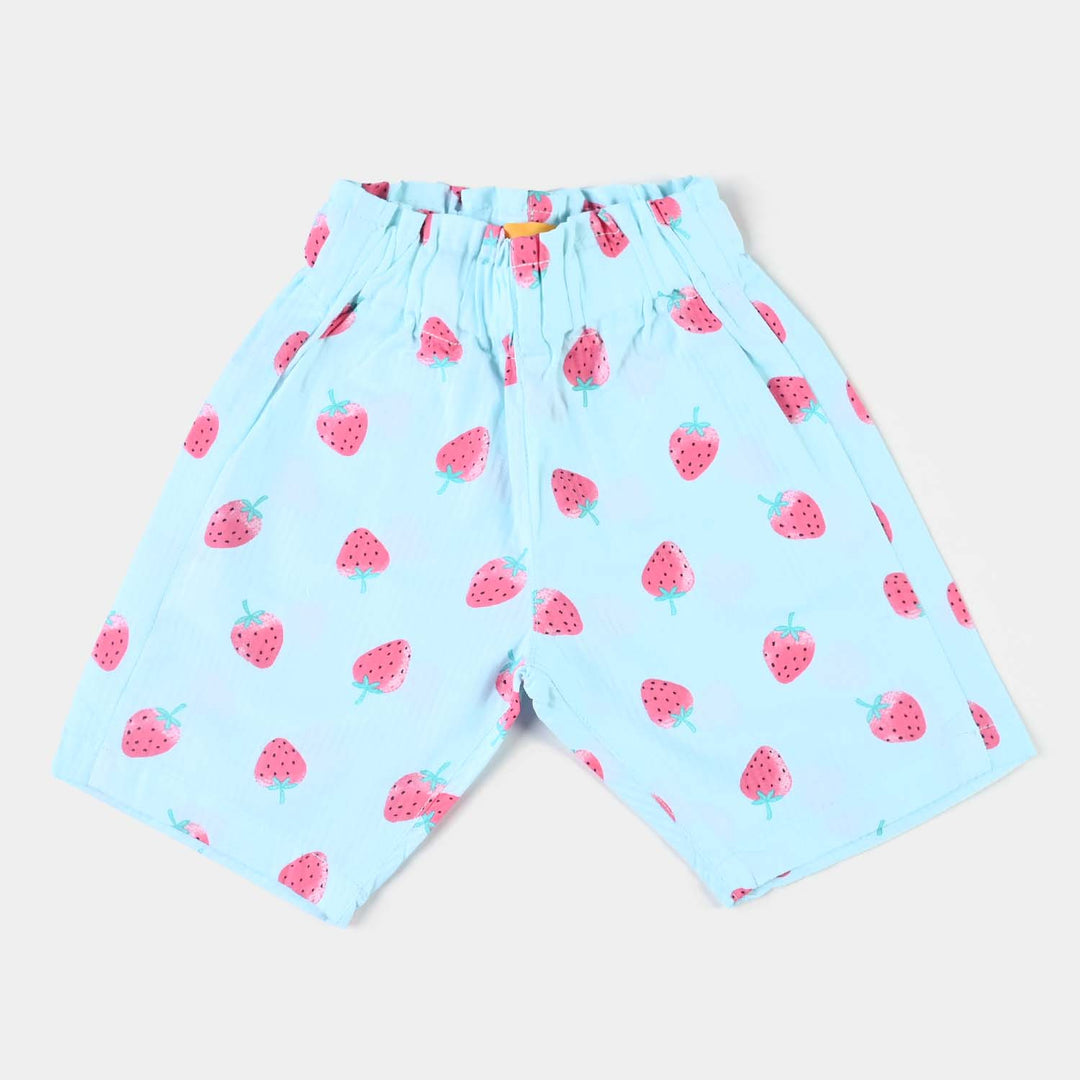 Infant Girls Cotton Viscose Short Printed Blue Flower