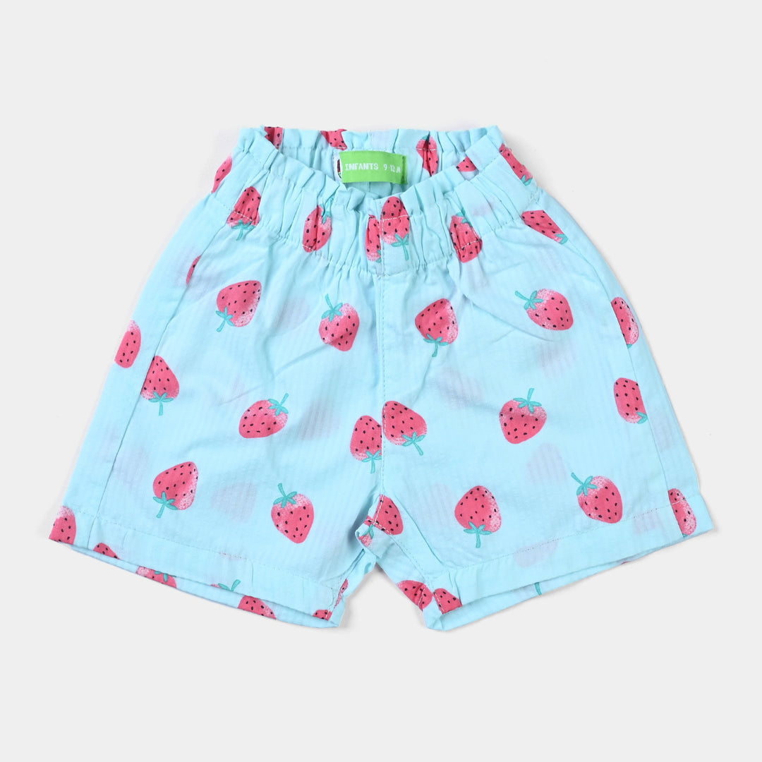 Infant Girls Cotton Terry Knitted Short Palm Tree-Candy Pink