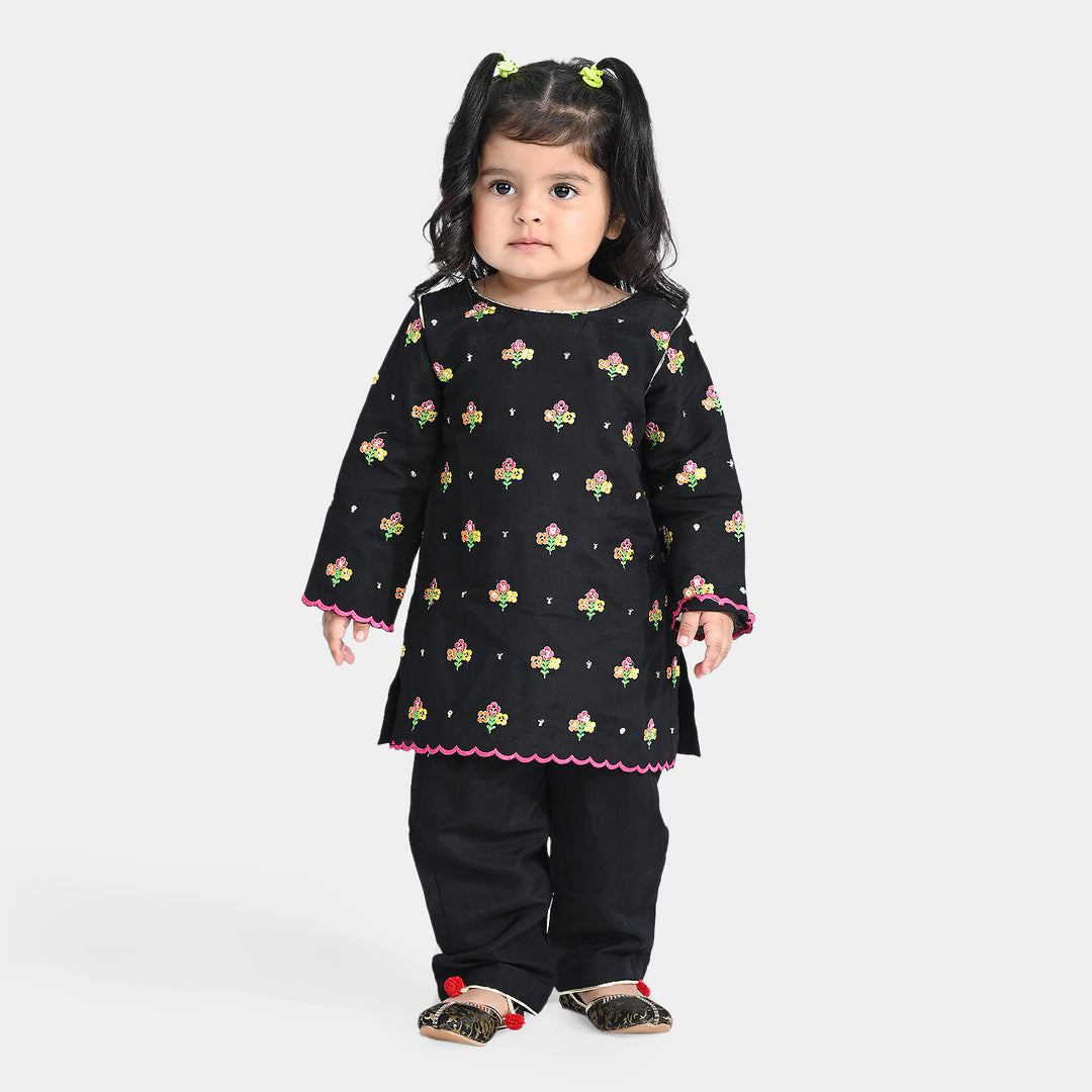 Girls Cotton Poplin Casual Frock Black Beauty-Multi