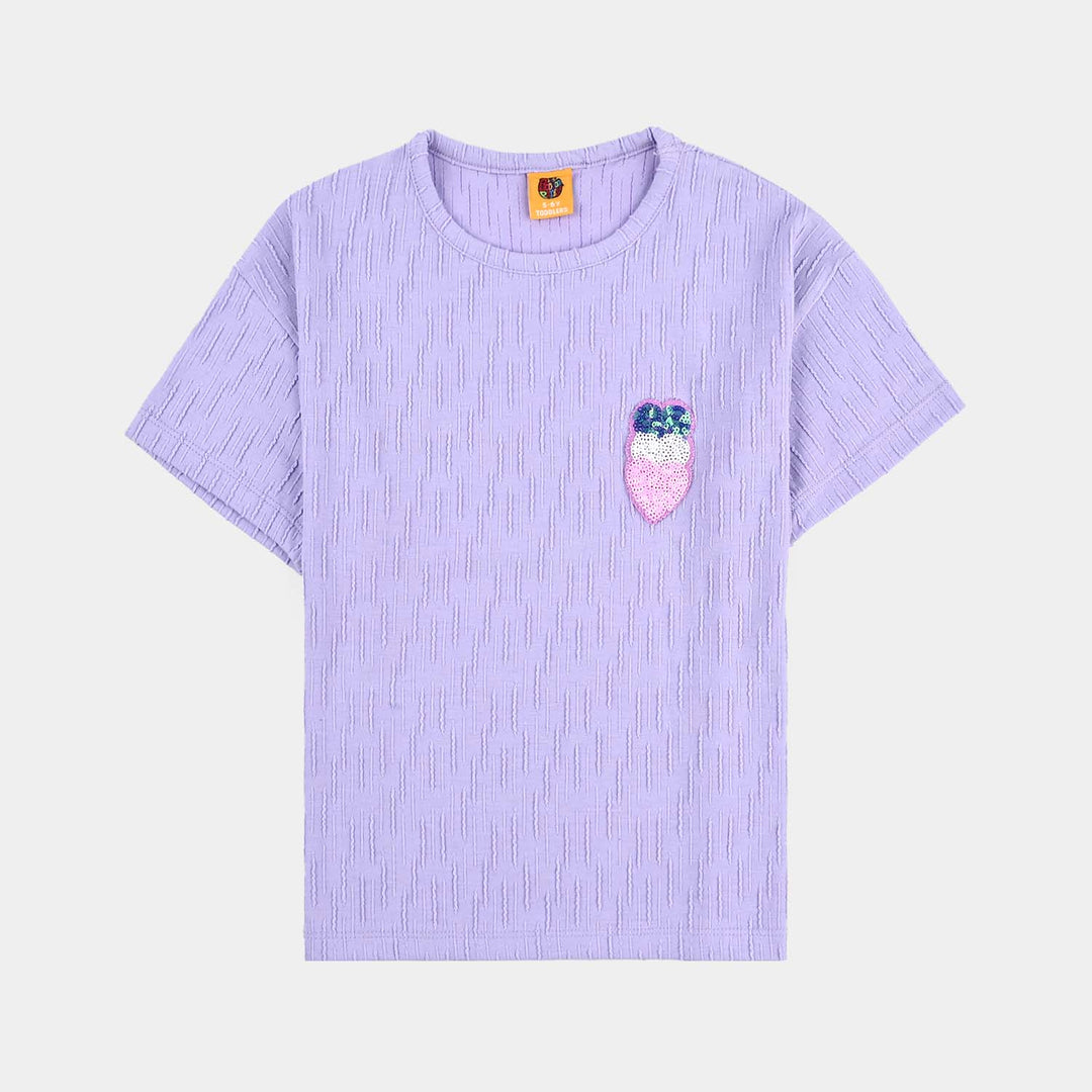 Girls Poly Crinkle T-Shirt Off White With Studs-KHAKI