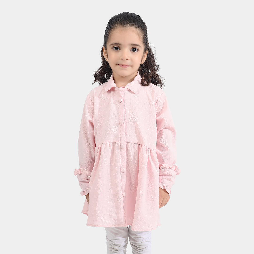 Infant Girls Cotton Slub Emb Kurti Little Popup-Mustard