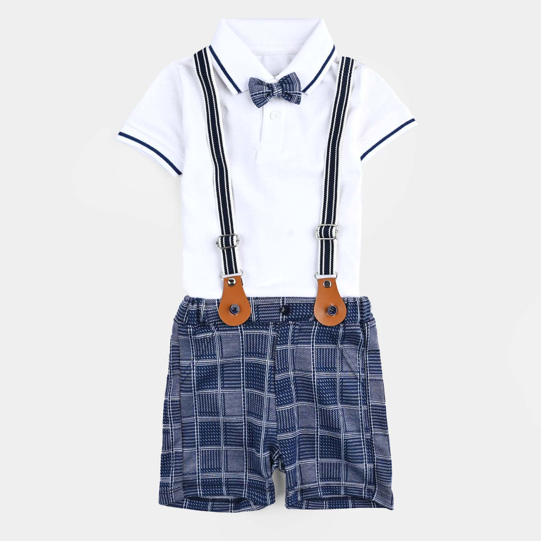 Infant Girls Cotton Terry Short Grow Girl-Navy Blue