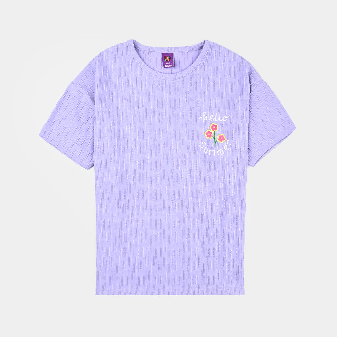 Girls Cotton Jersey T-Shirt CROCHET FLOWERS-Pink
