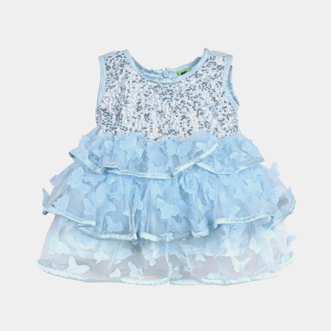 Girls Velvet & Net Fancy Frock Sequence-B.Red