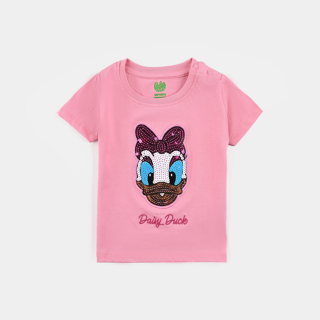 Infant Girls Lycra Jersey T-Shirt Pink Star-Hot Pink