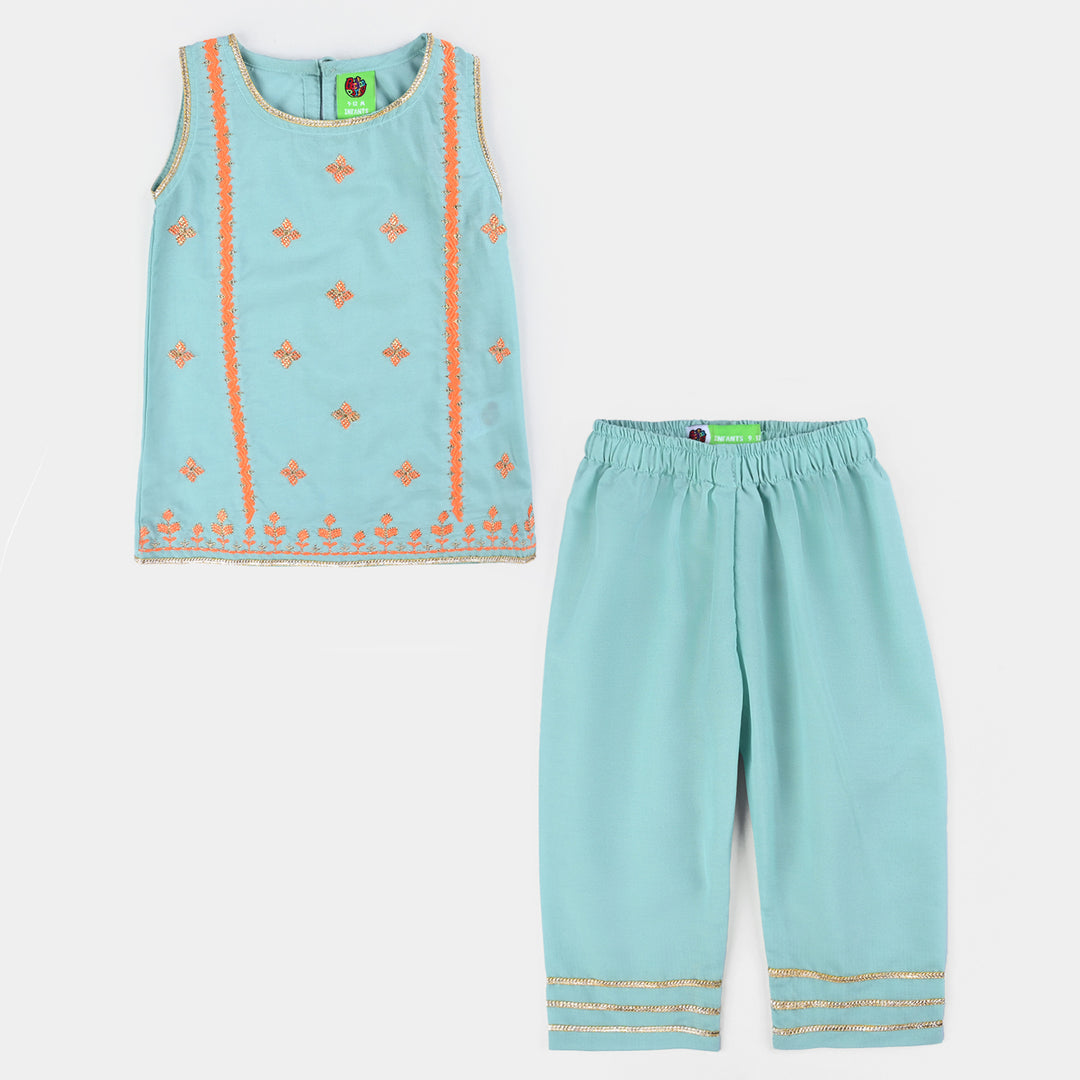 Infant Girls Poly Satin Fancy Frock Smoked-LT.Blue