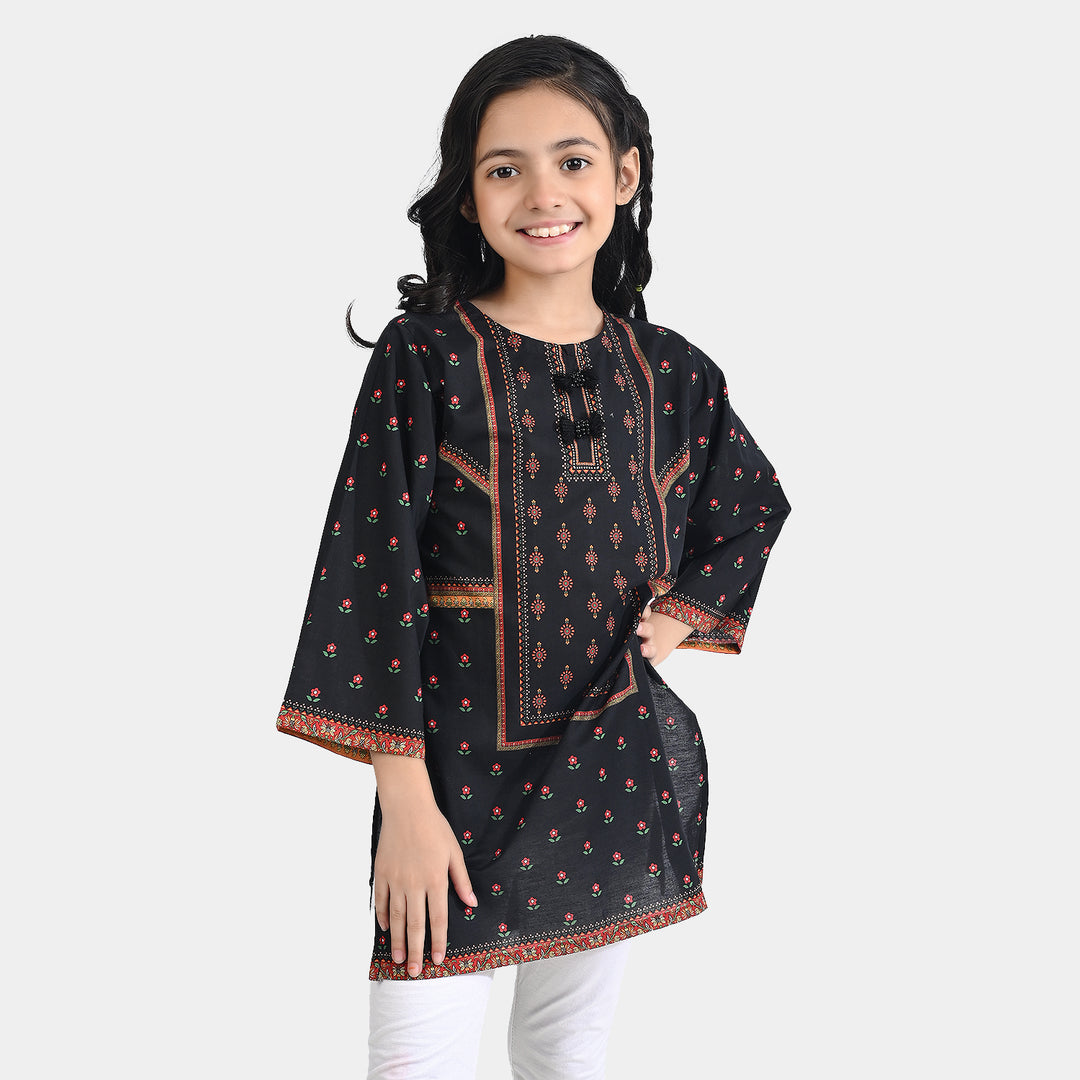Girls Cotton Poplin Casual Top Chin Print-Multi