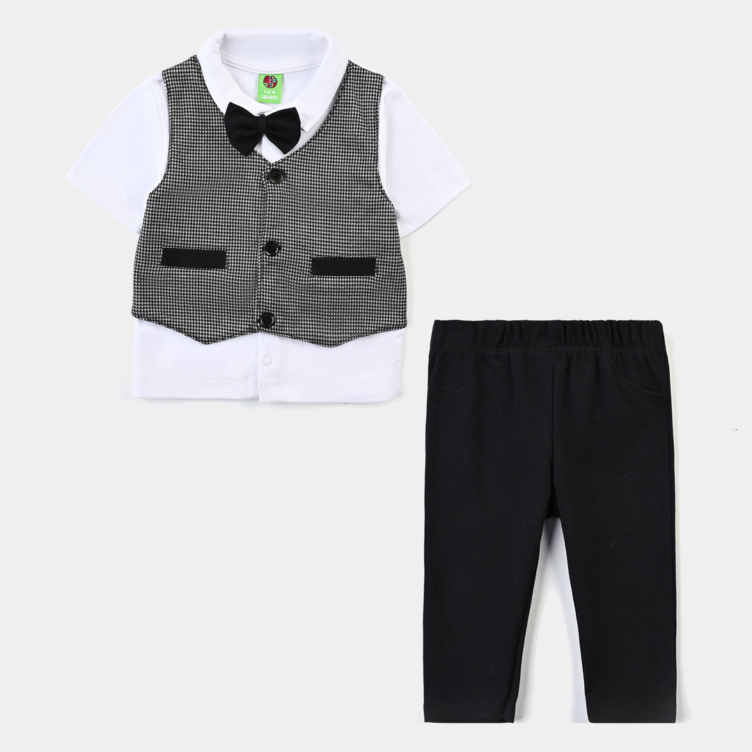 Infant Boys Cotton Terry Romper Front Tie Style-NAVY