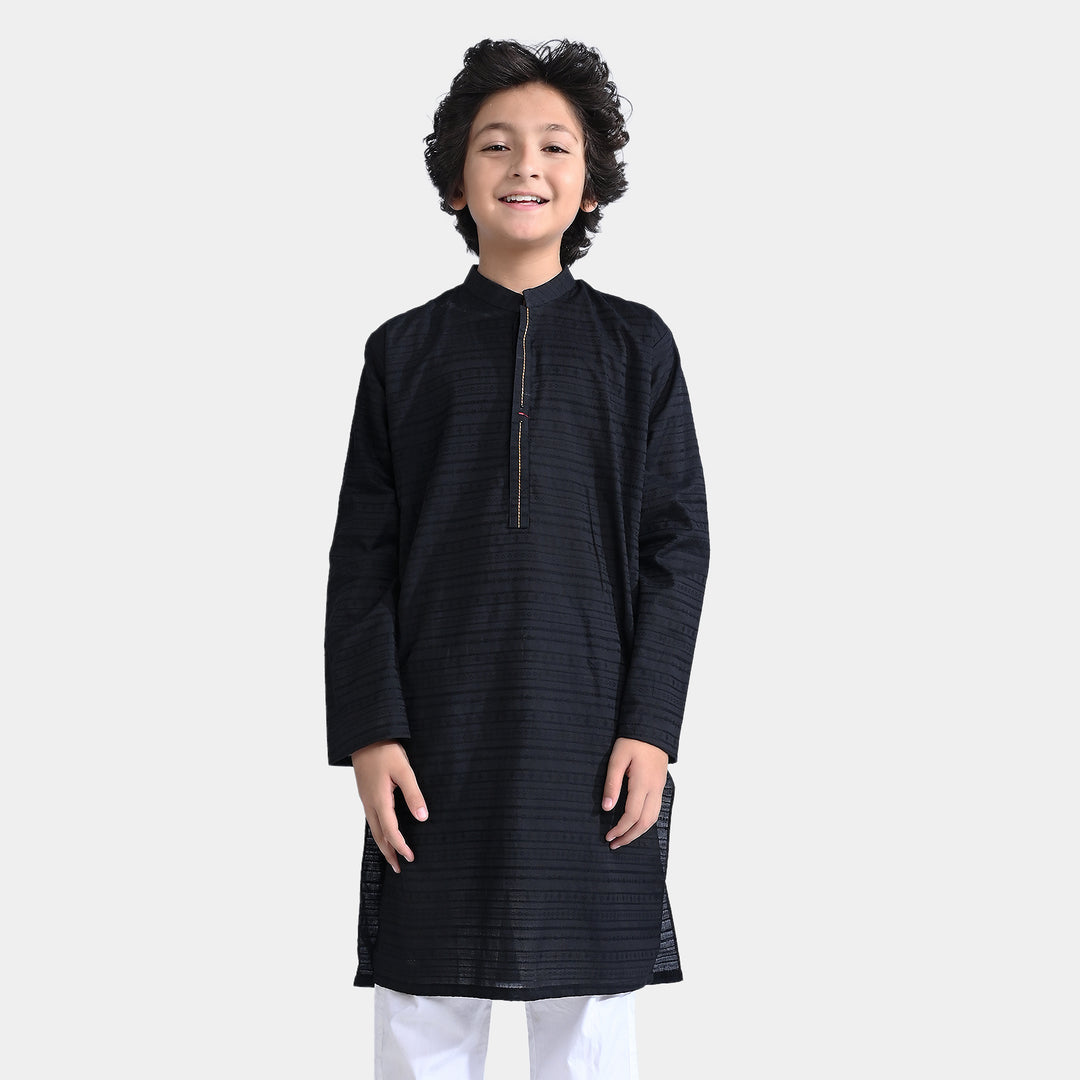 Boys Yarn Dyed Casual Shirt F/S (Wide Stripe)-Blue