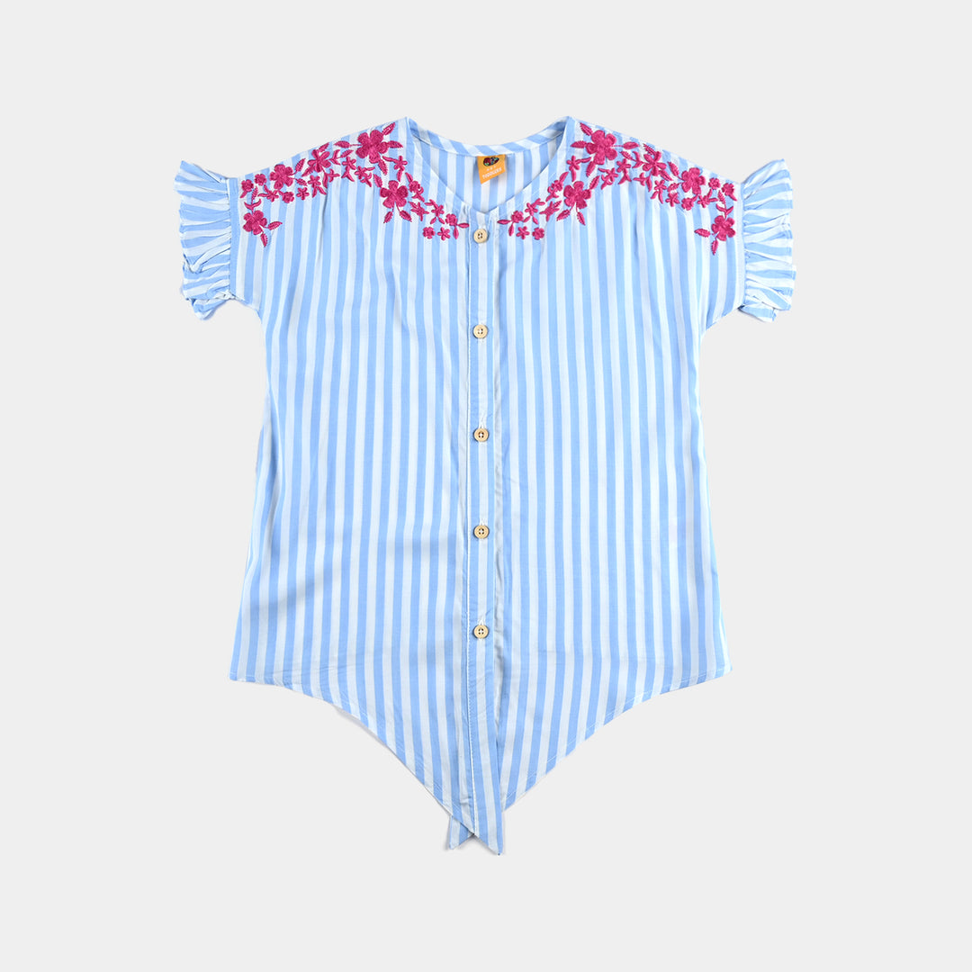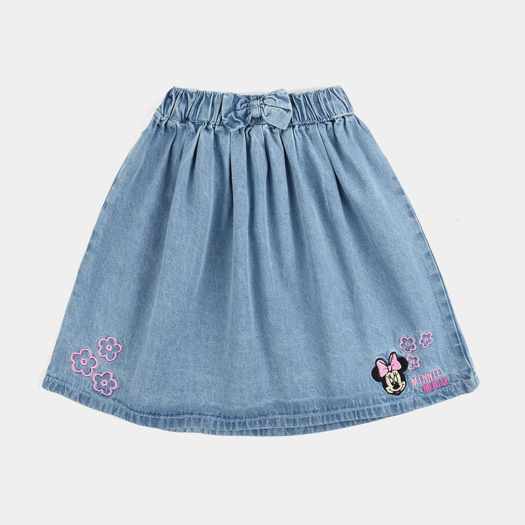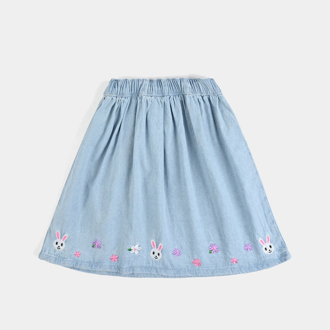 Infant Girls Denim Skirt Floral Embroidery-Light Blue