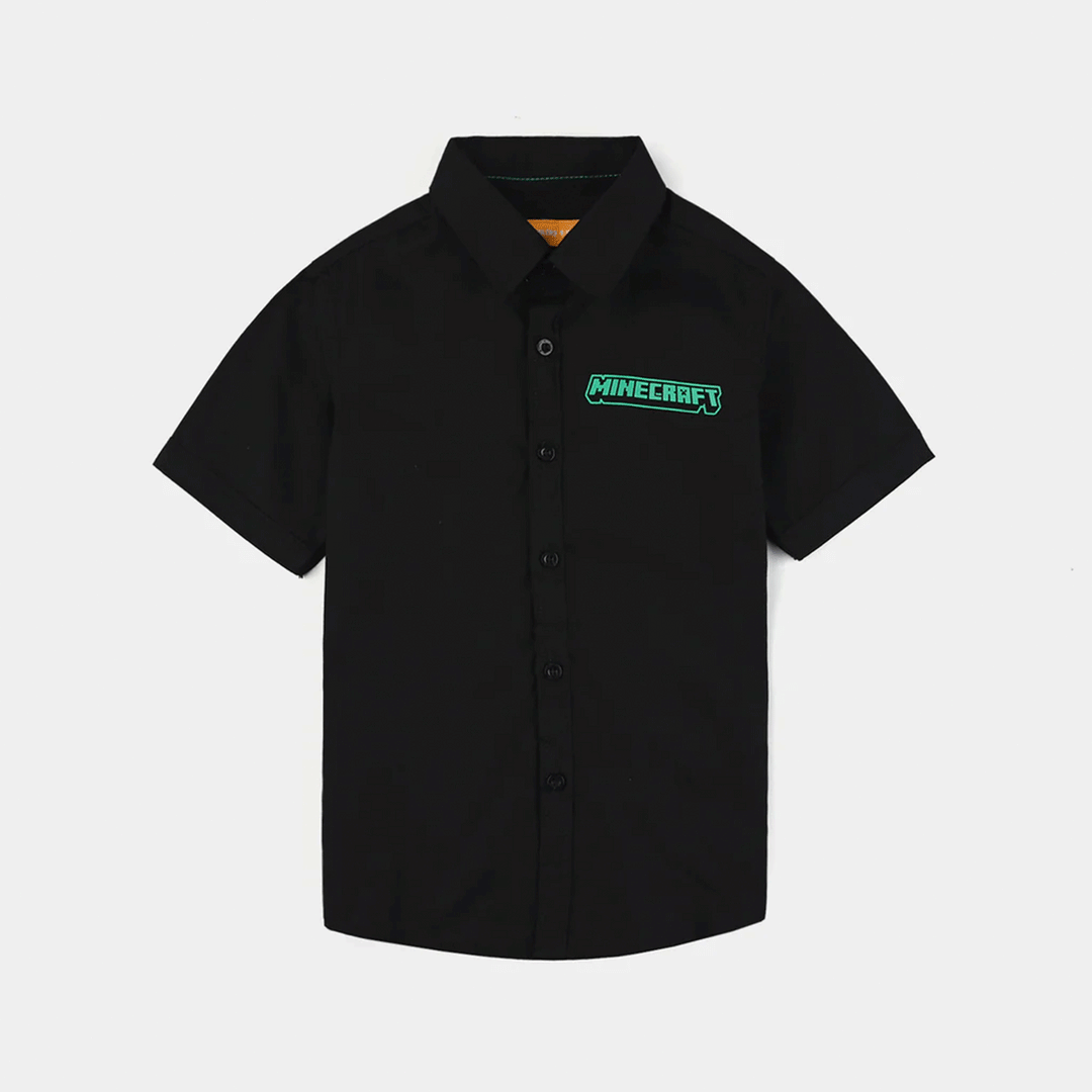 Boys Yarn Dyed Casual Shirt H/S (Controller)-BLACK
