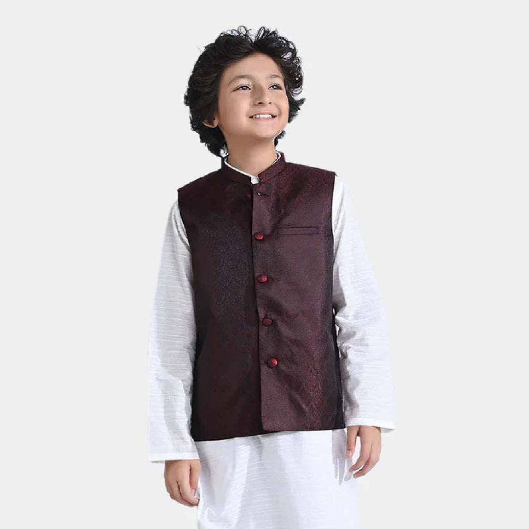 Infant Boys Poly Viscose Waistcoat (Sequence EMB)-Off White
