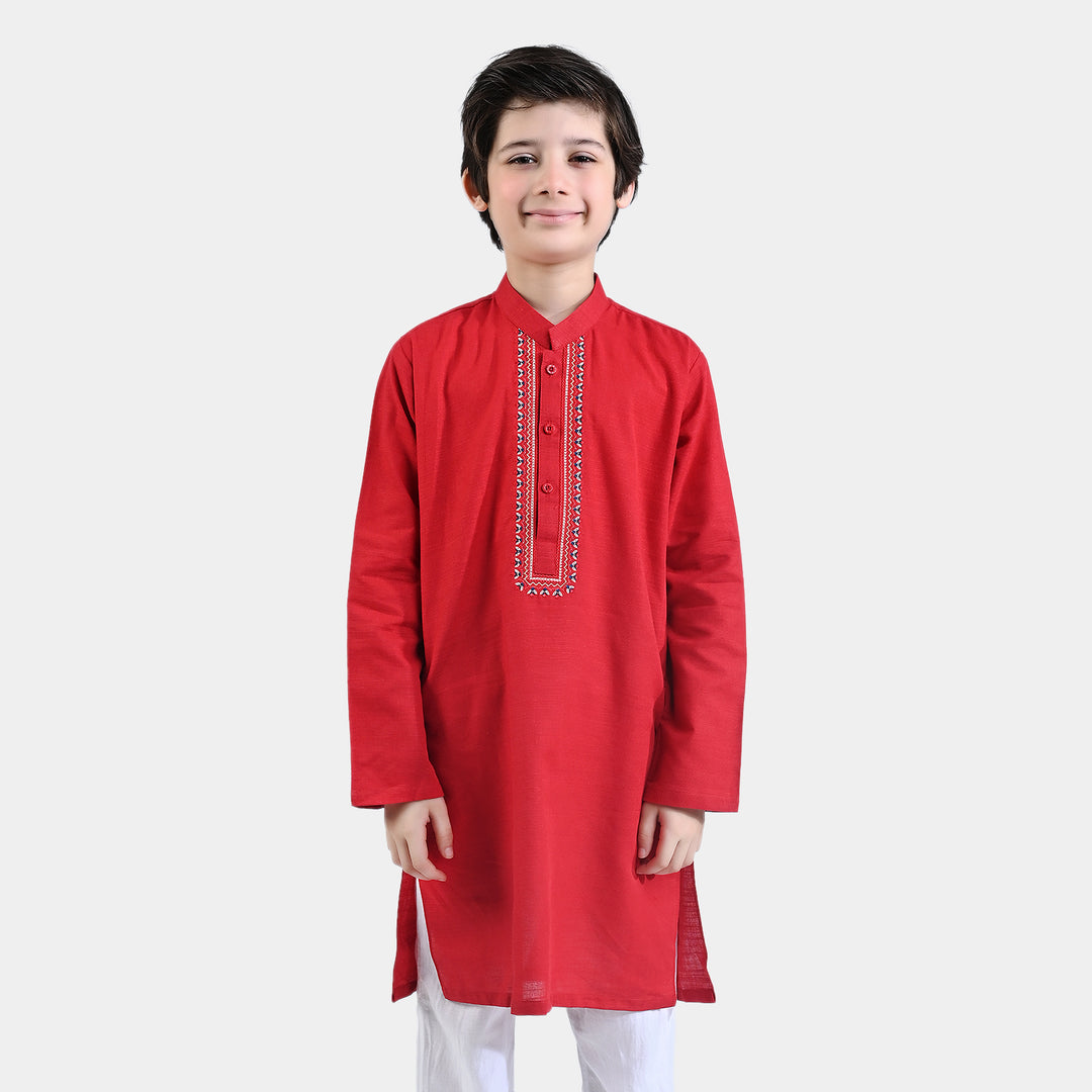 Boys Cotton Slub Printed Kurta (Puff Print)-Red