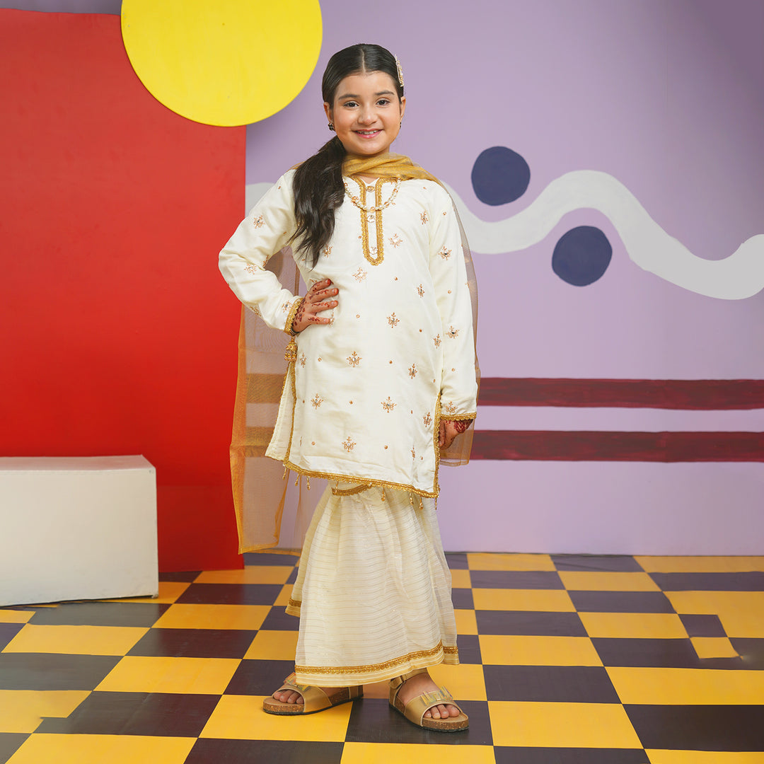 Girls Cotton Slub Embroidered Kurti Glimmer-Mustard
