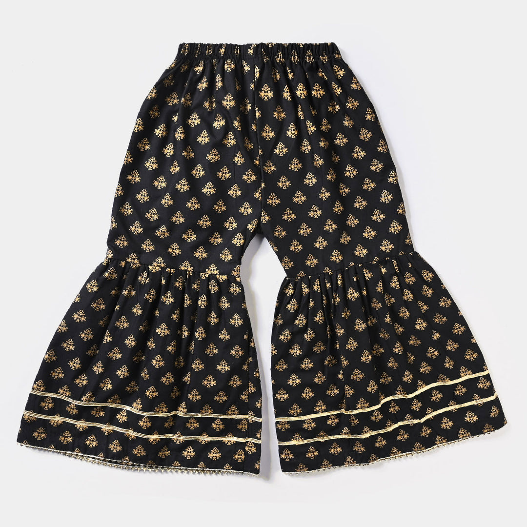 Infant Girls Cotton Viscose Short Printed Black Flower