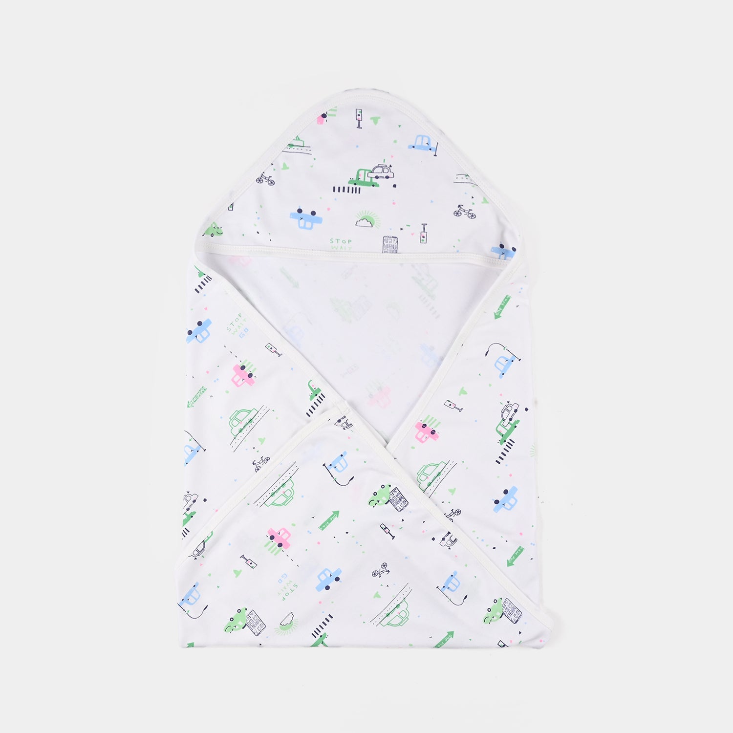 Soft and cozy car-themed baby wrapping sheet with a hood to keep your little one warm. Gentle on baby’s skin, easy to wrap, and perfect for everyday comfort.