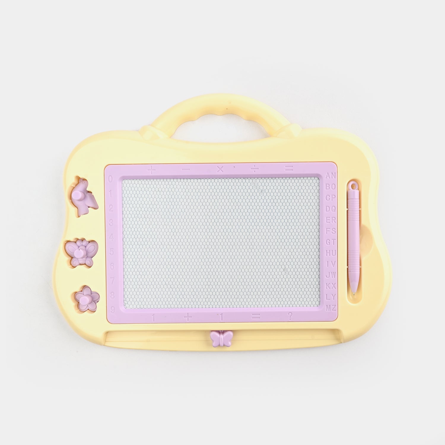 This magic toy board/slate, equipped with a magnetic drawing surface provides endless opportunities for creativity and exploration. Use the included magnetic stylus to draw, write, and doodle, and then slide the eraser bar to clear the board and start new.