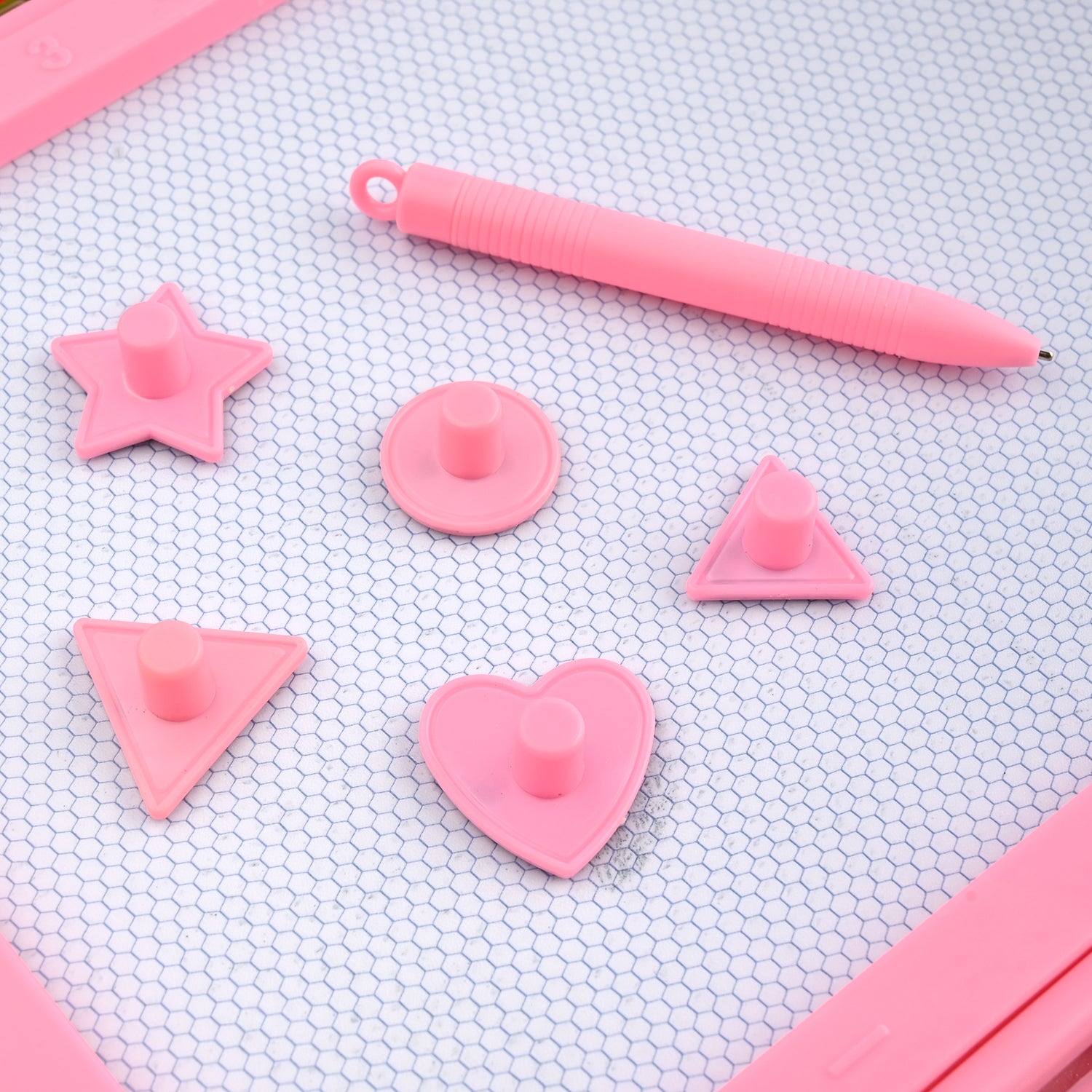 This magic toy board/slate, equipped with a magnetic drawing surface provides endless opportunities for creativity and exploration. Use the included magnetic stylus to draw, write, and doodle, and then slide the eraser bar to clear the board and start new.