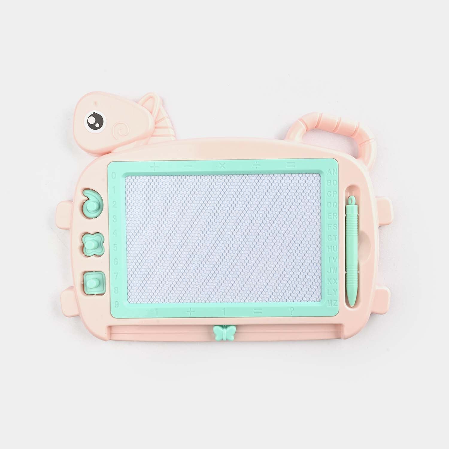 This magic toy board/slate, equipped with a magnetic drawing surface provides endless opportunities for creativity and exploration. Use the included magnetic stylus to draw, write, and doodle, and then slide the eraser bar to clear the board and start new.
