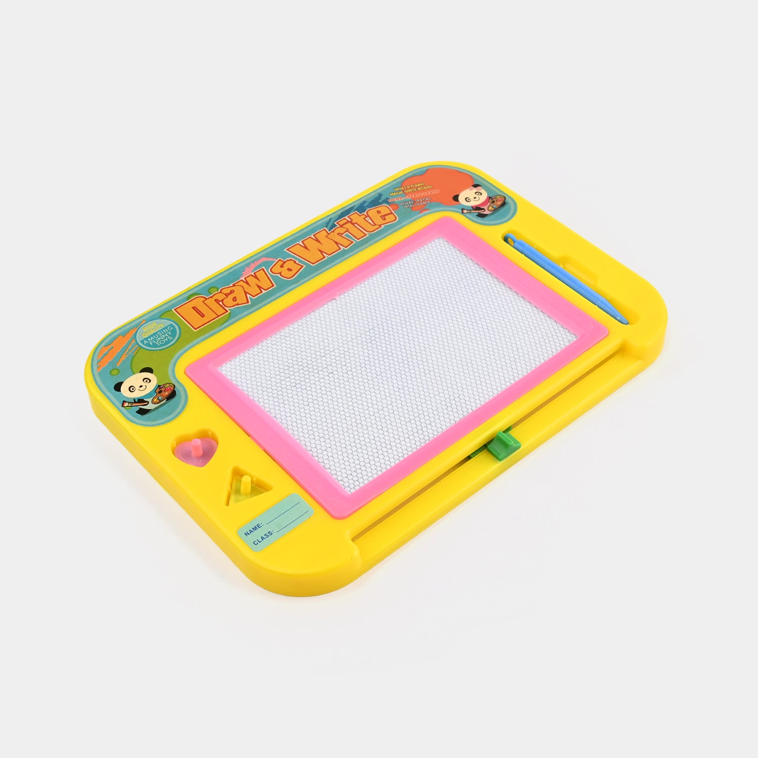 This magic toy board/slate, equipped with a magnetic drawing surface provides endless opportunities for creativity and exploration. Use the included magnetic stylus to draw, write, and doodle, and then slide the eraser bar to clear the board and start new.