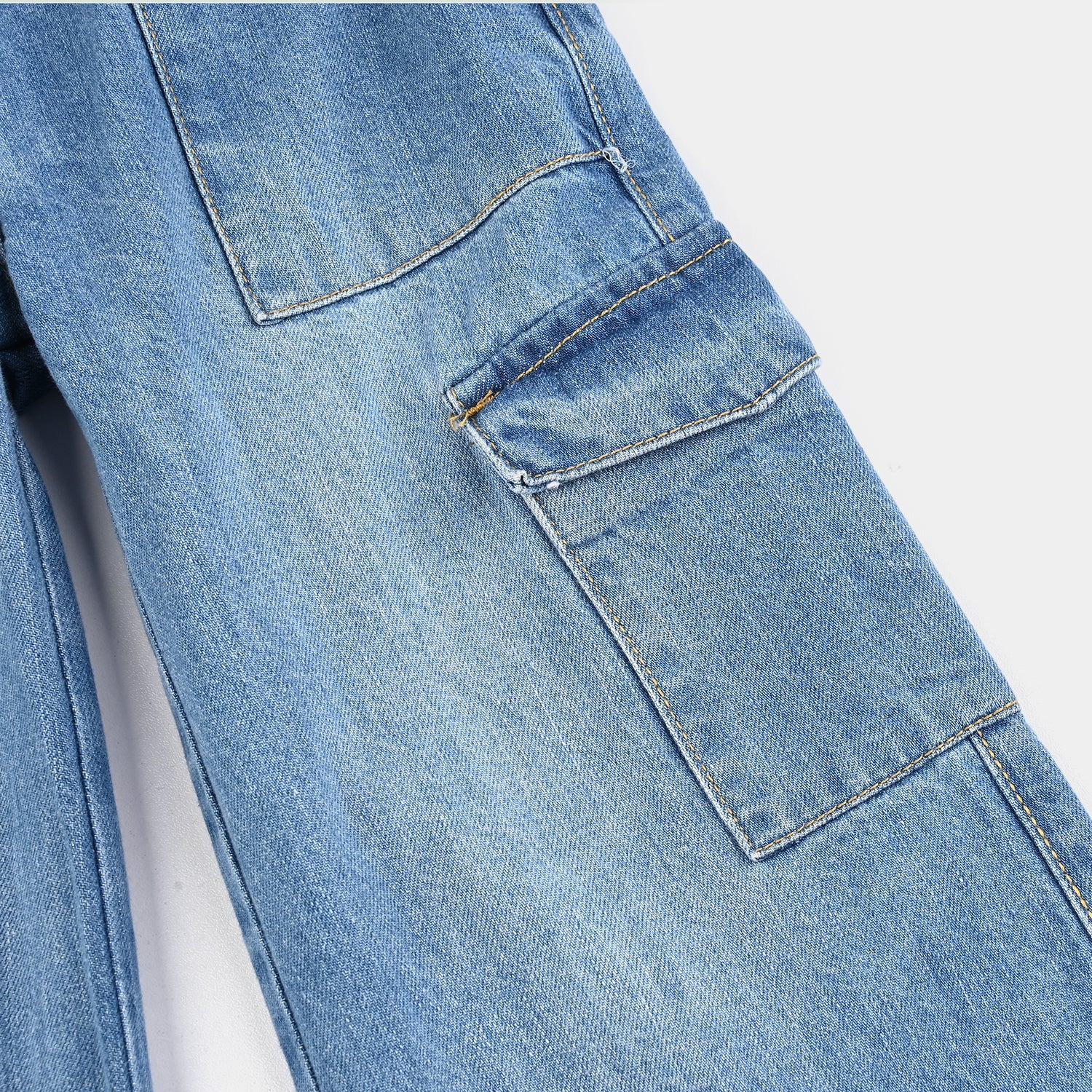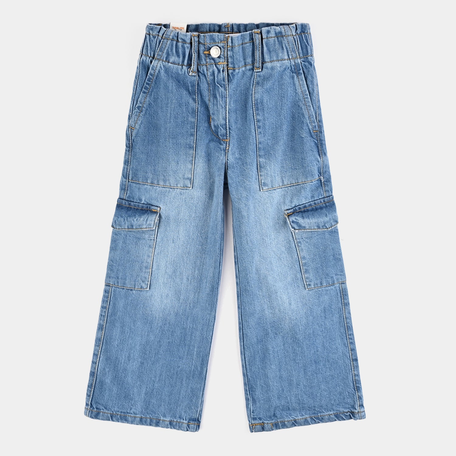 Bachaa Party brings you the best price Girls Denim Stretch Pant Cargo-Mid Blue with express shipping all over Pakistan.
