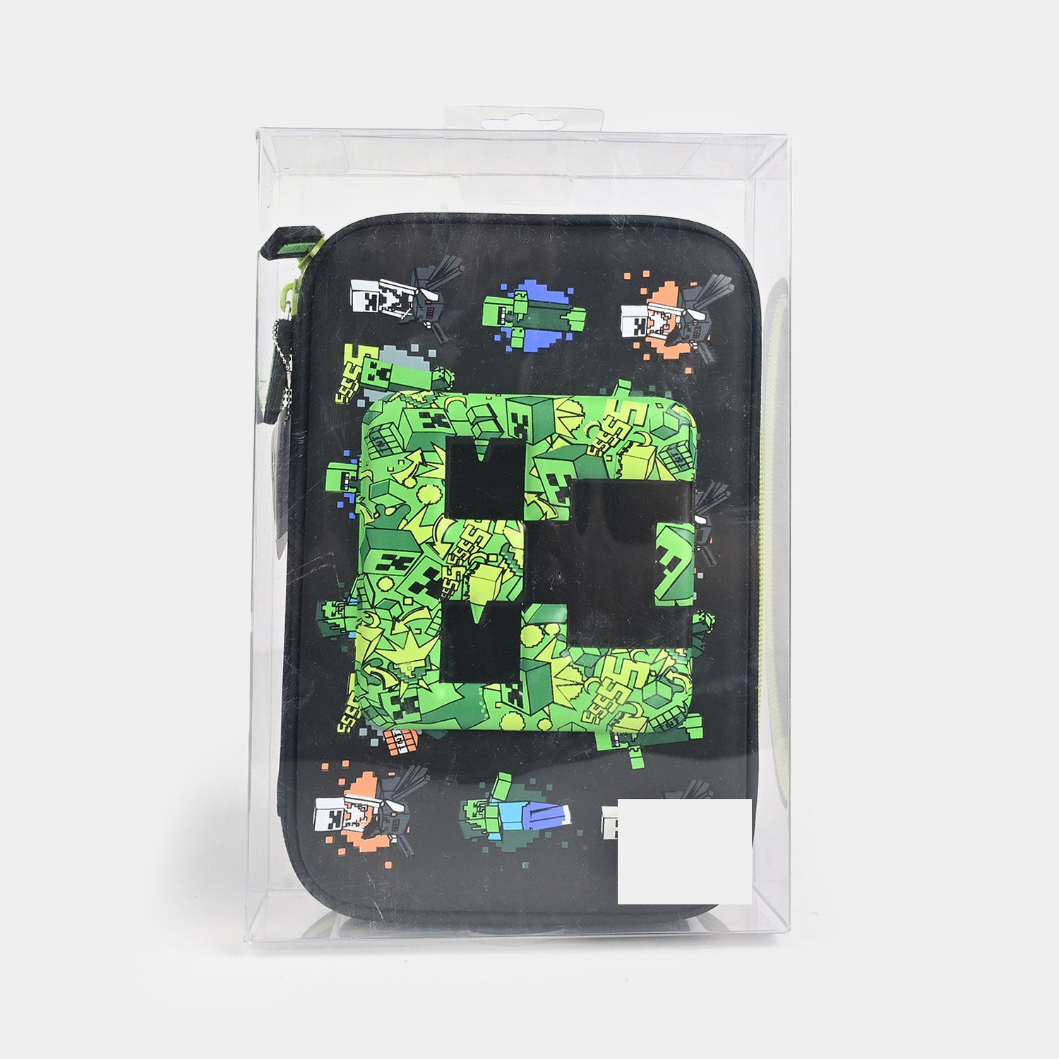 This Smiggle pencil case has an eye-catching 3D embossed design with a hardtop front for enhanced stationery protection. It features a single main compartment with a wide opening and includes internal mesh pockets and pen holder slots for organized storage.