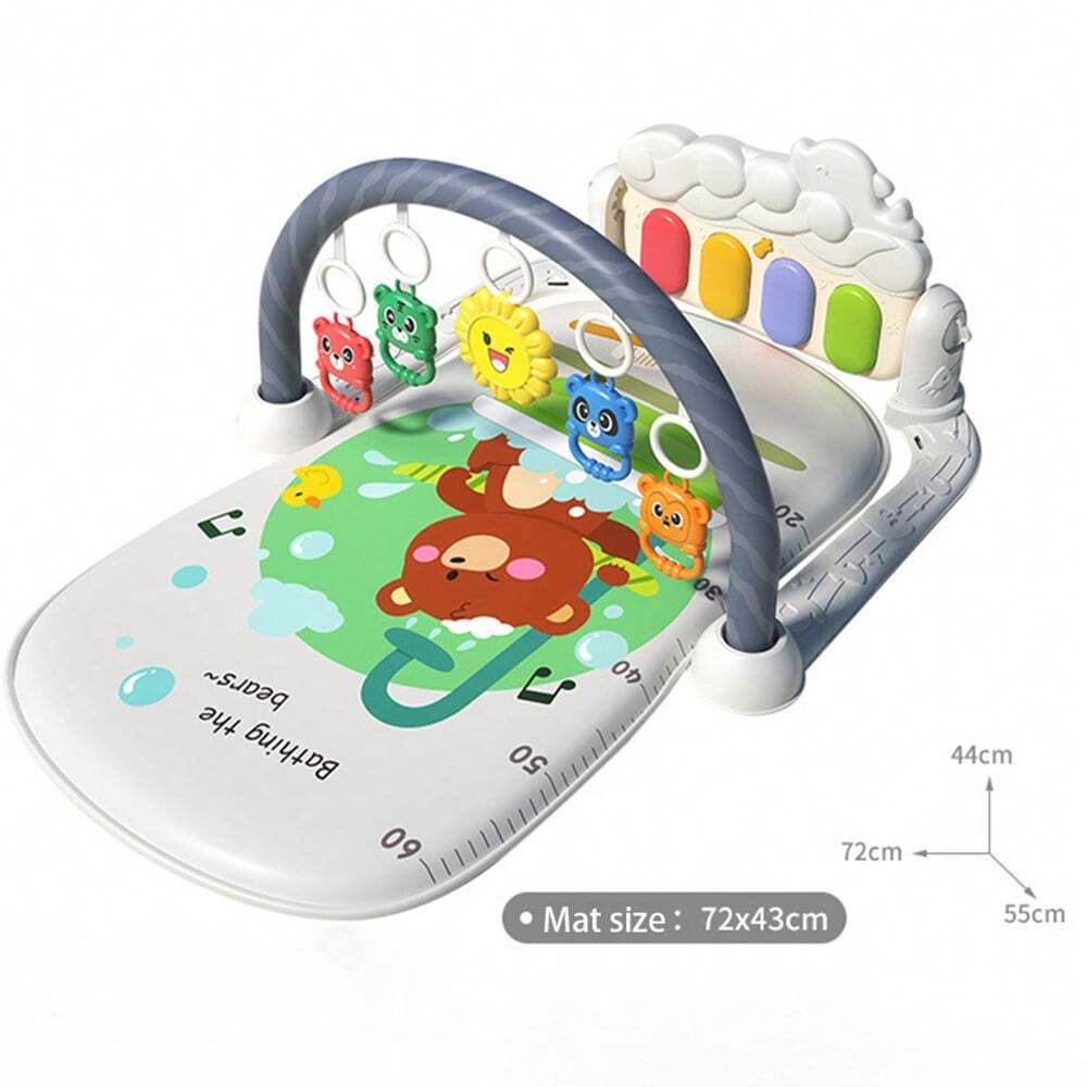 Turn playtime into a joyful learning adventure with this Baby Play Gym Piano Play Mat. This delightful play mat is designed to grow with your baby, offering multi-stage fun from lying down to tummy time and seated play. The soft, colorful padded mat keeps your little one cozy, while the kick-activated musical piano encourages active leg movement and plays cheerful melodies to stimulate auditory development. Overhead, a detachable toy arch is adorned with adorable hanging animal toys, perfect for grasping and reaching, supporting motor skills and sensory exploration. When itβs time to clean up, the mat is easy to wipe and maintain.Β