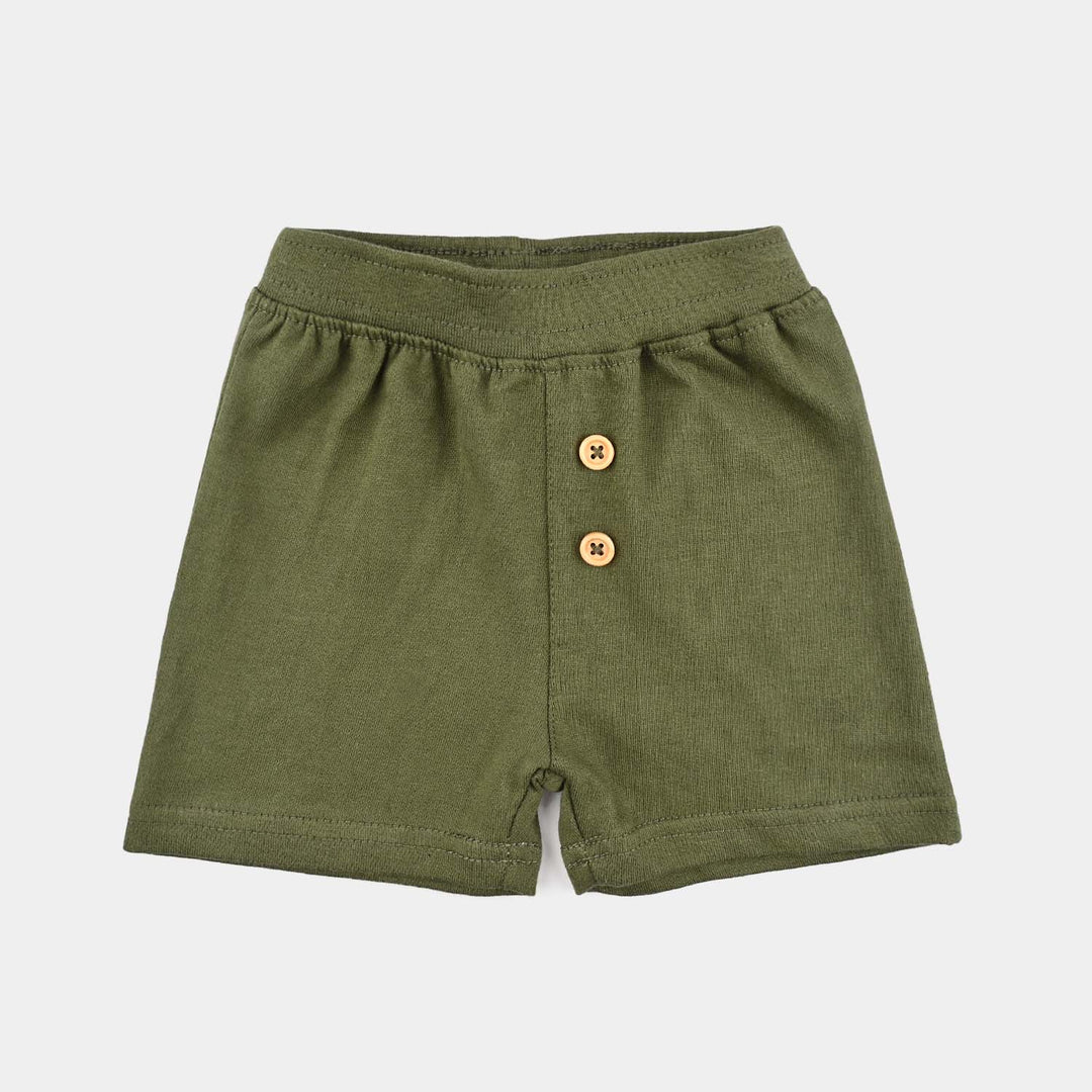 Infant Boys Cotton Terry Short Basic Wooden Button-Chive