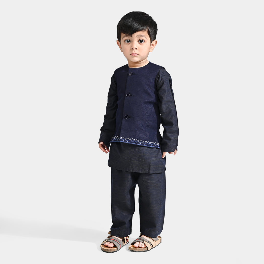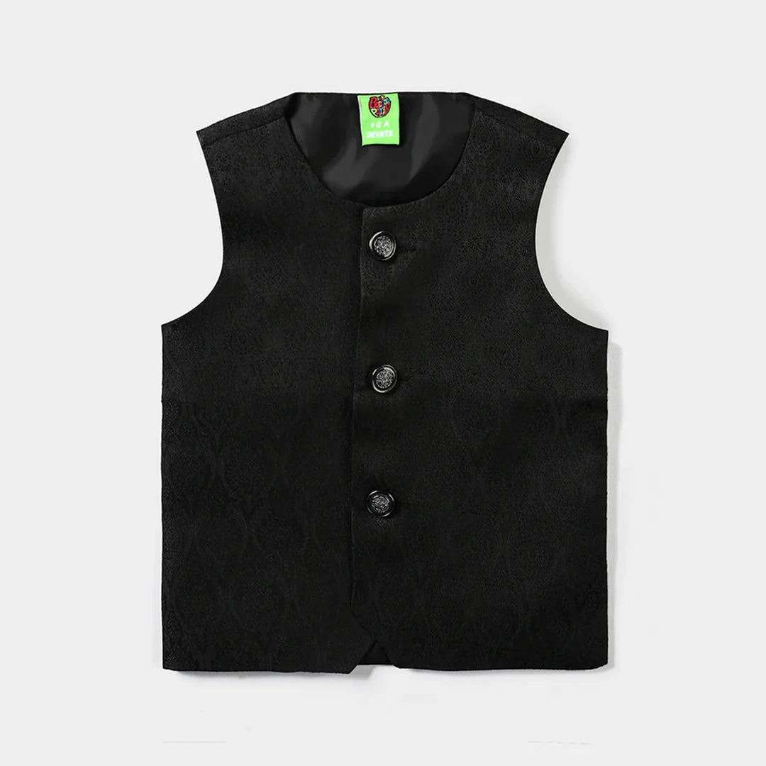 Infant Boys Poly Viscose Waistcoat (Jamawar)-BLACK