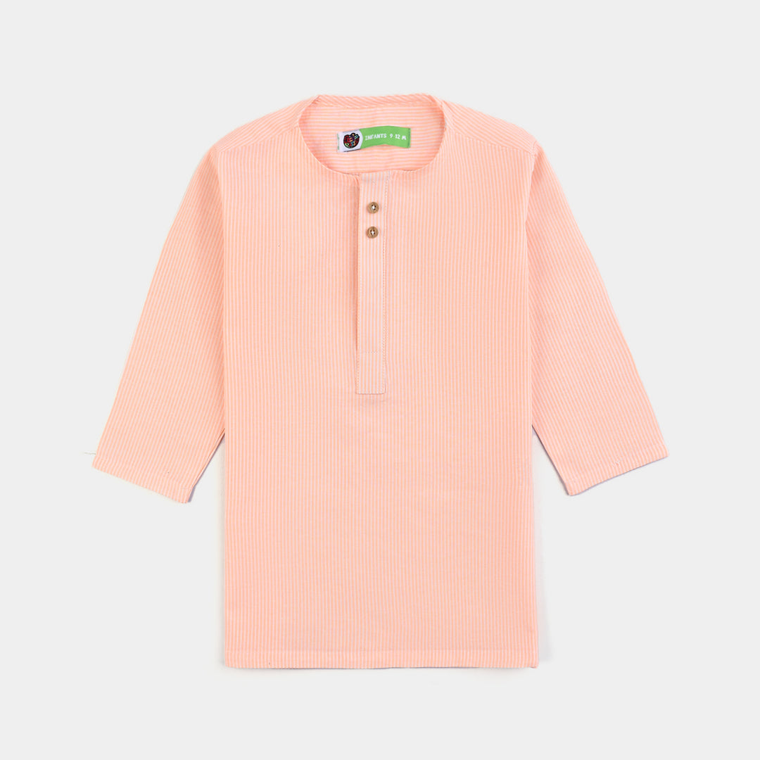 Infant Boys Yarn Dyed Basic Kurta (Ban Collar)-Lt.Orange
