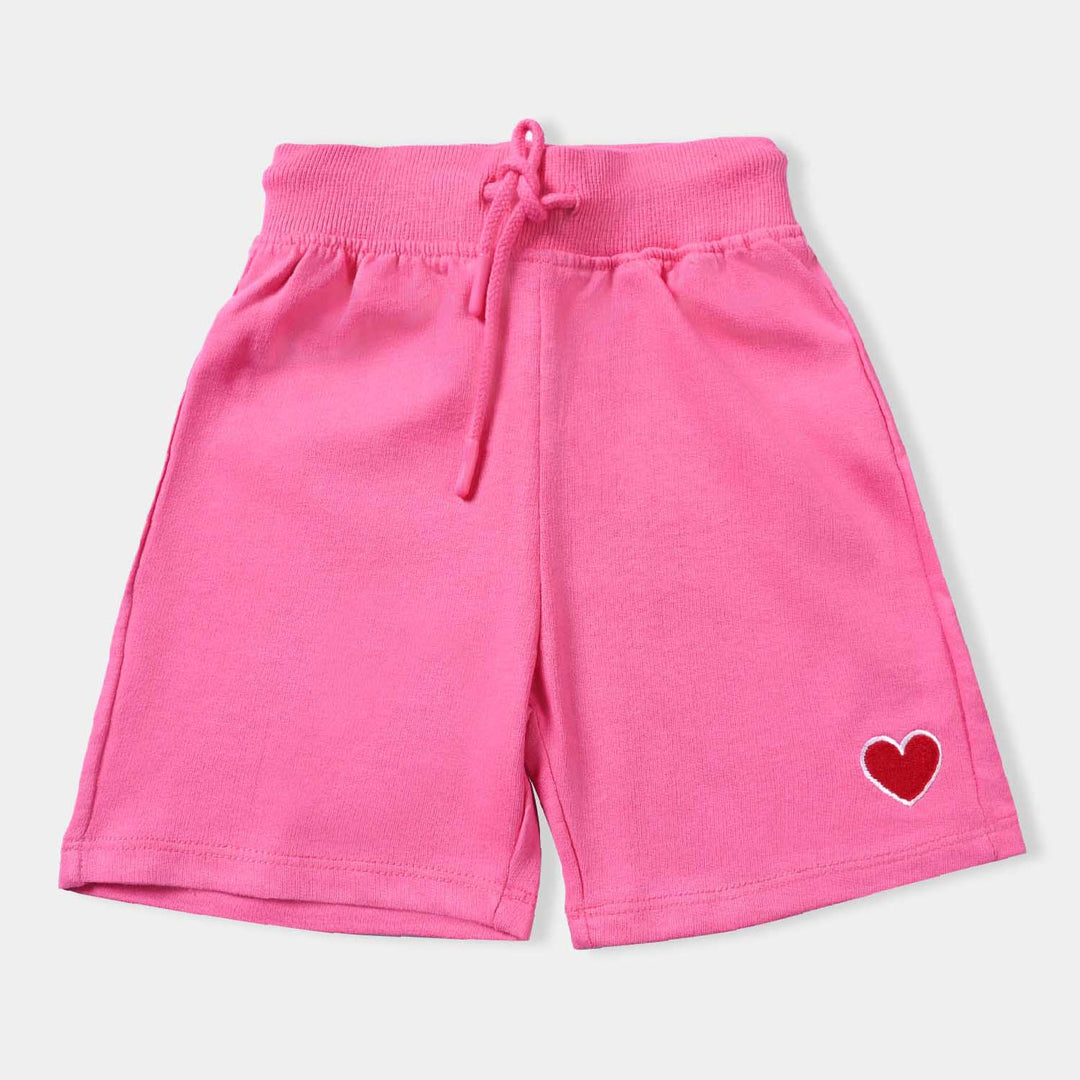 Infant Girls Cotton Terry Knitted Short Heart-Hot Pink