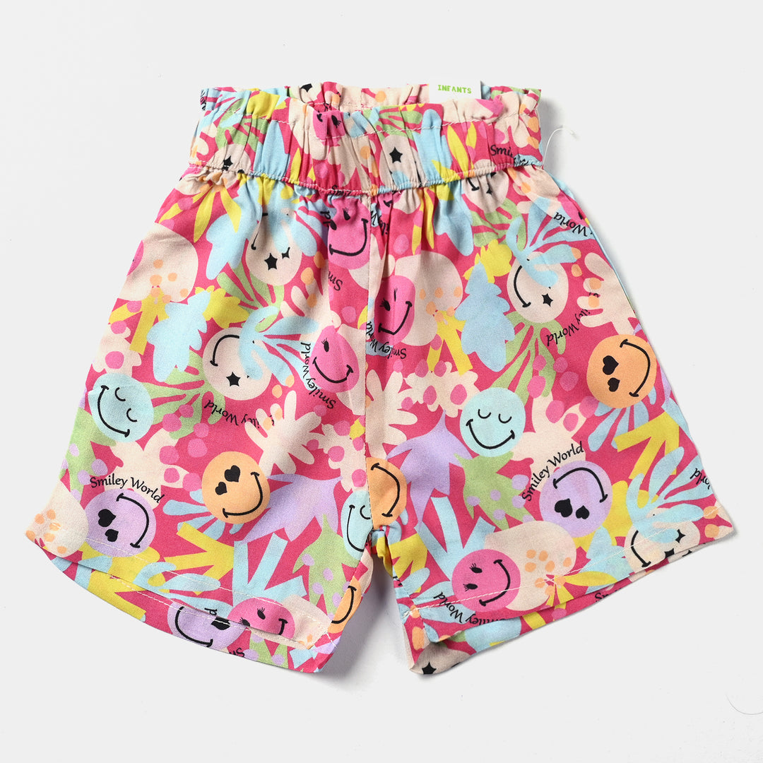 Infant Girls Cotton Viscose Short Printed Smiley-Multi
