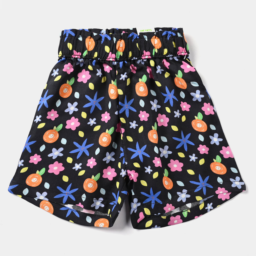 Infant Girls Cotton Viscose Short Printed Black Flower